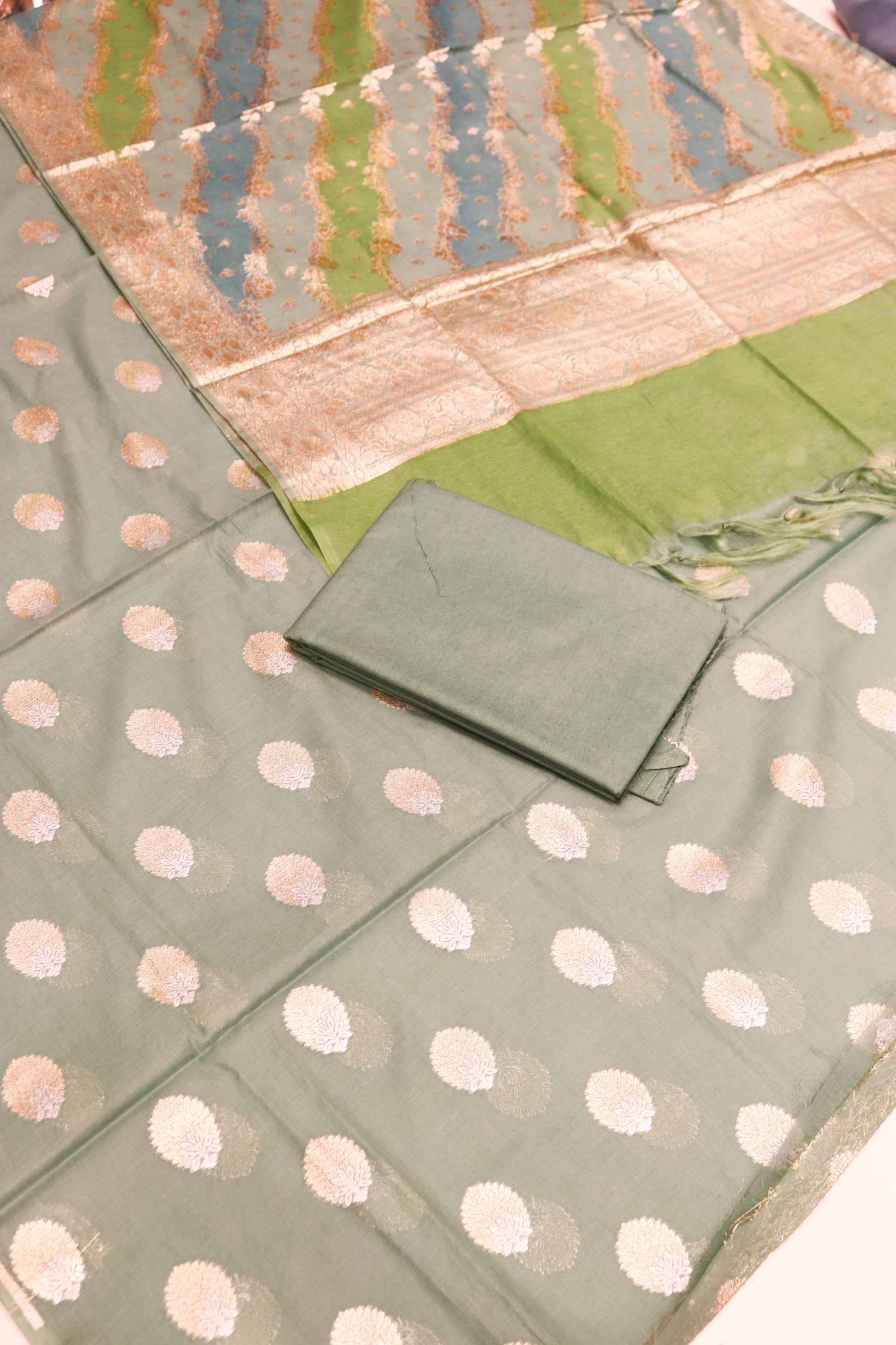Alfi Butti Suite With Banarasi Rangkaat Dupatta And Bottom-Green