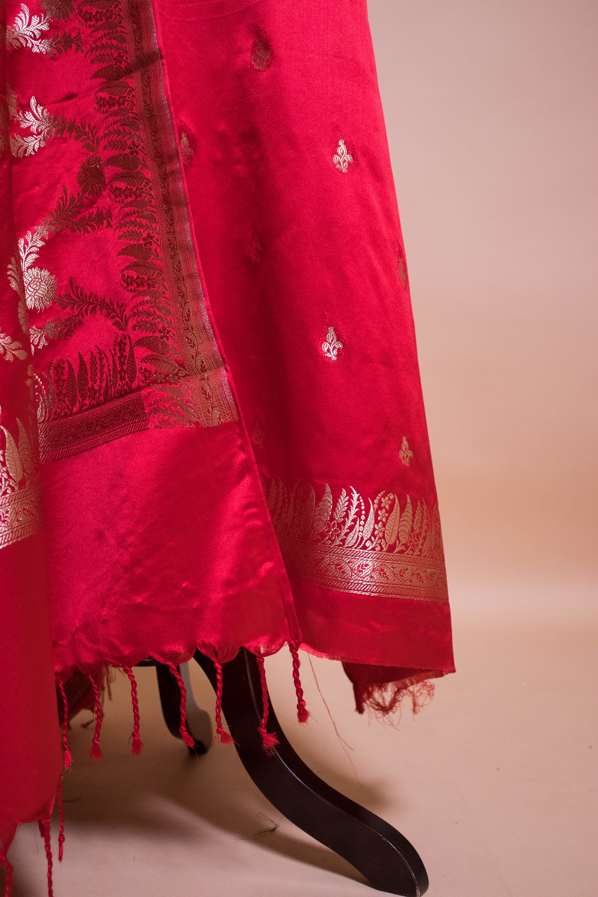 Banarasi Butrti Weaved Suit Fabric With Jaal Dupatta-Red