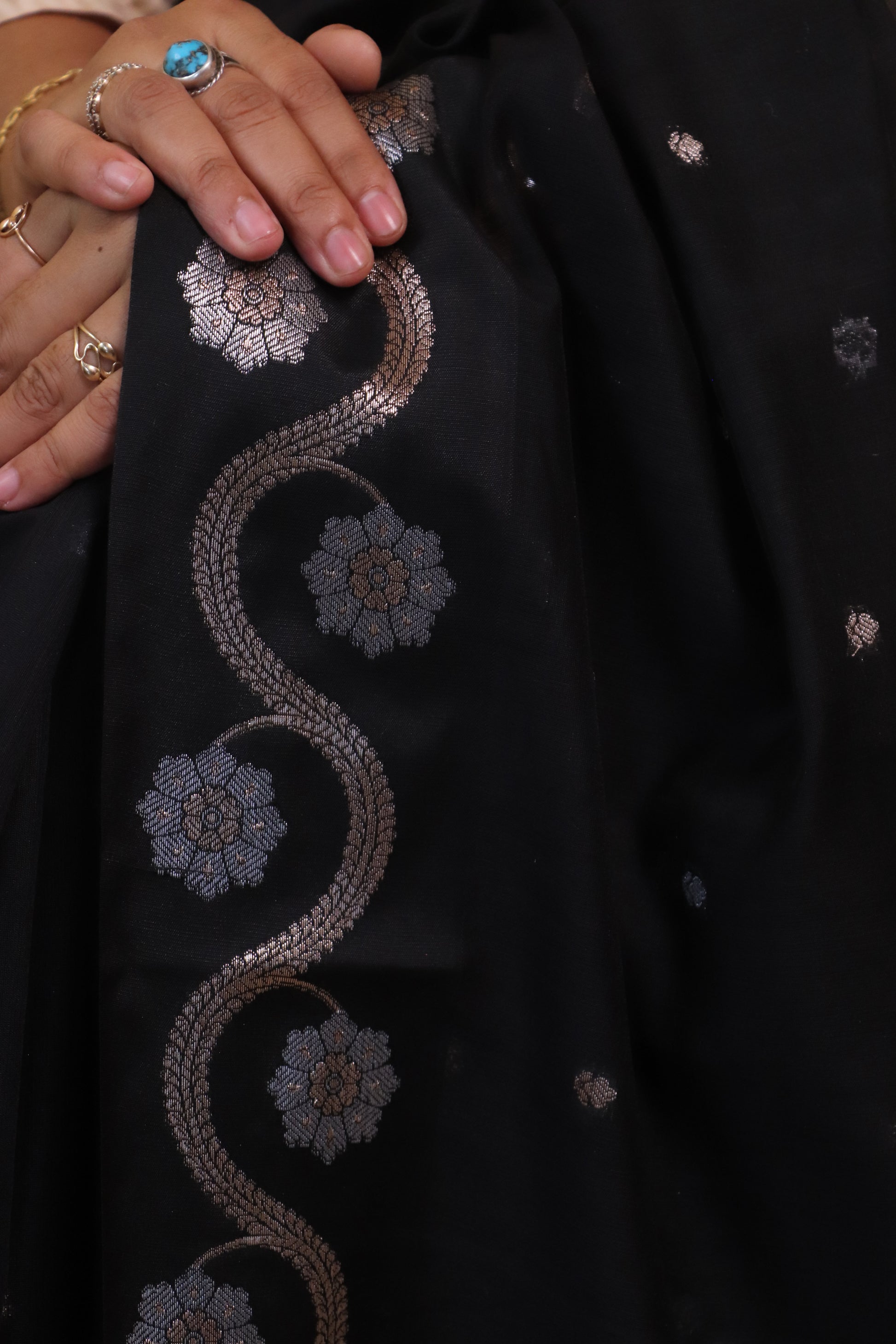 Banarasi Cotton Saree Weaved In Sona Rupa Weaving - Black