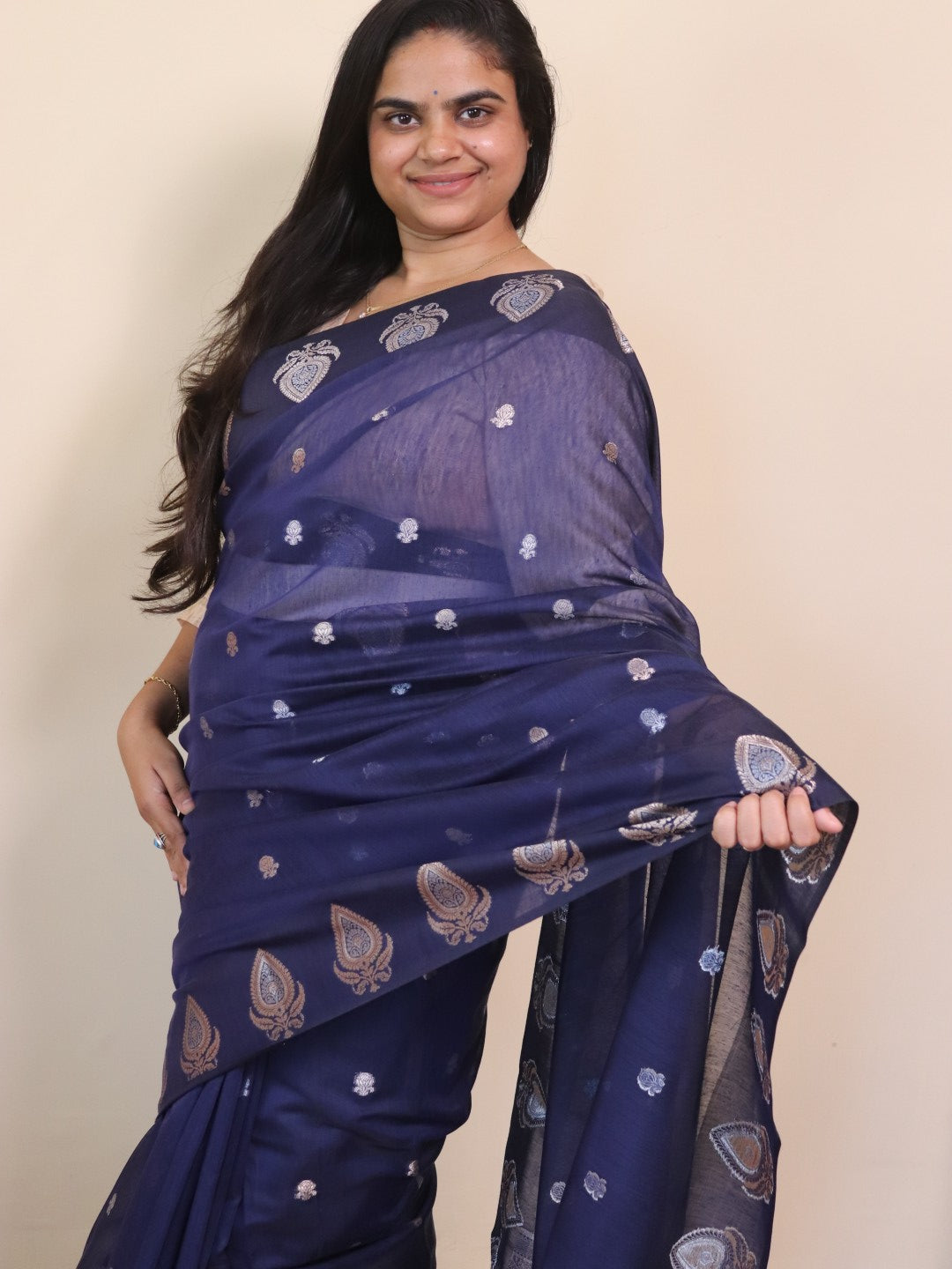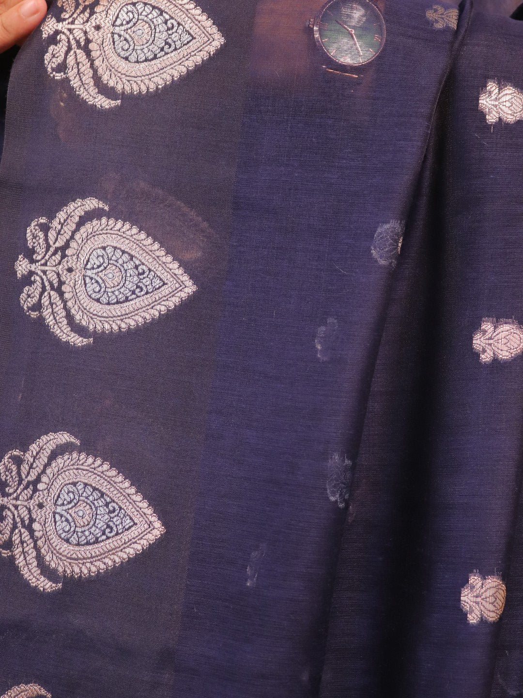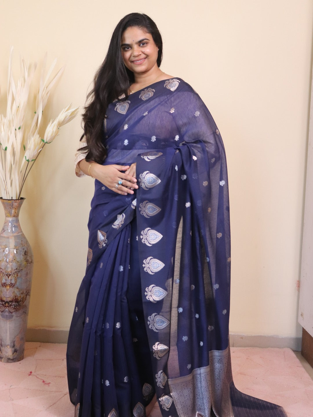 Banarasi Cotton Saree With Sona Rupa Weaving -Navy Blue