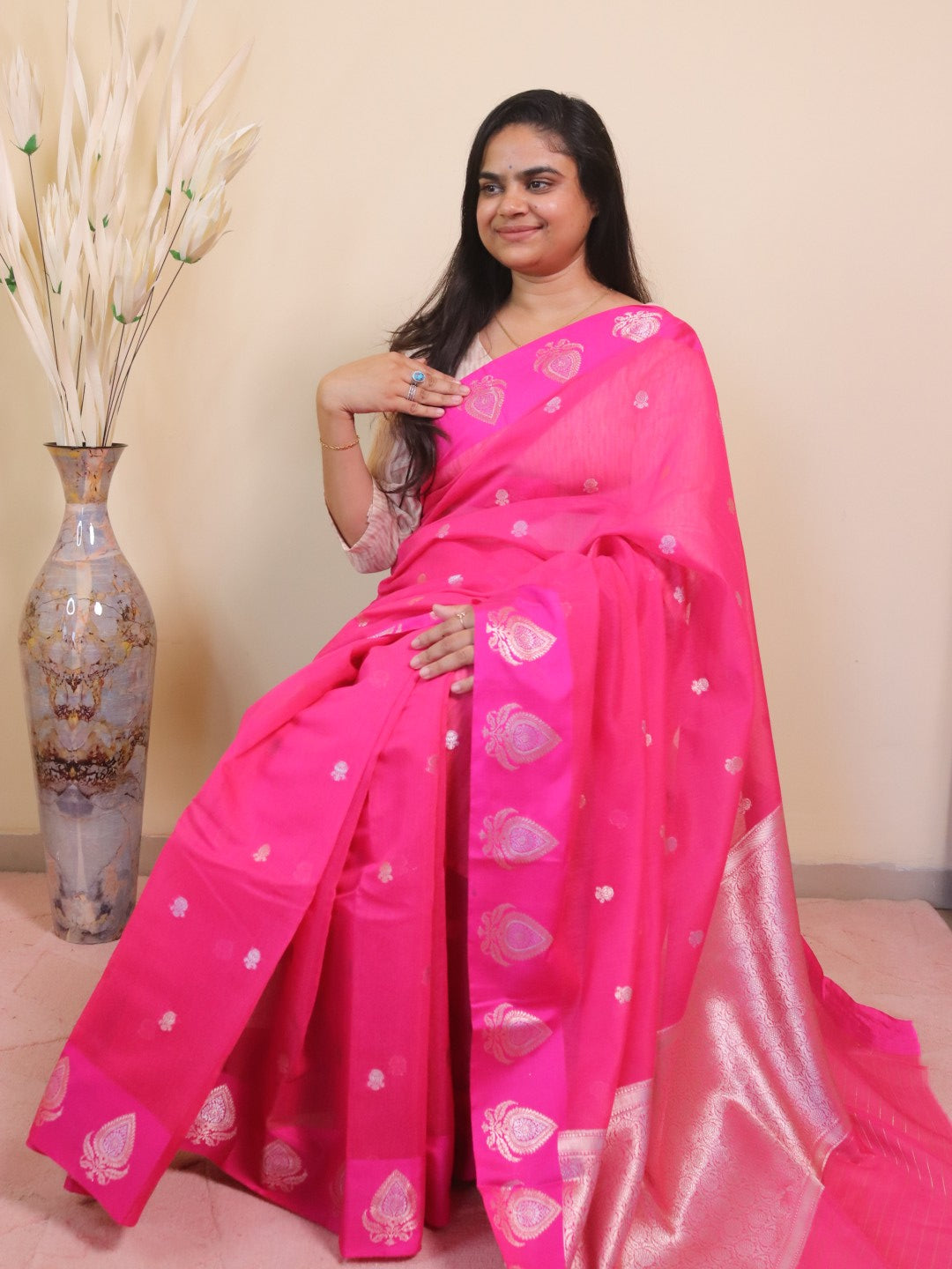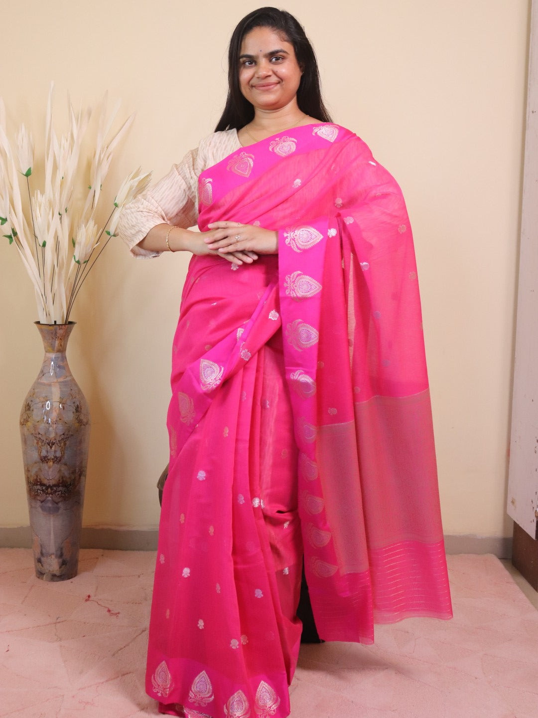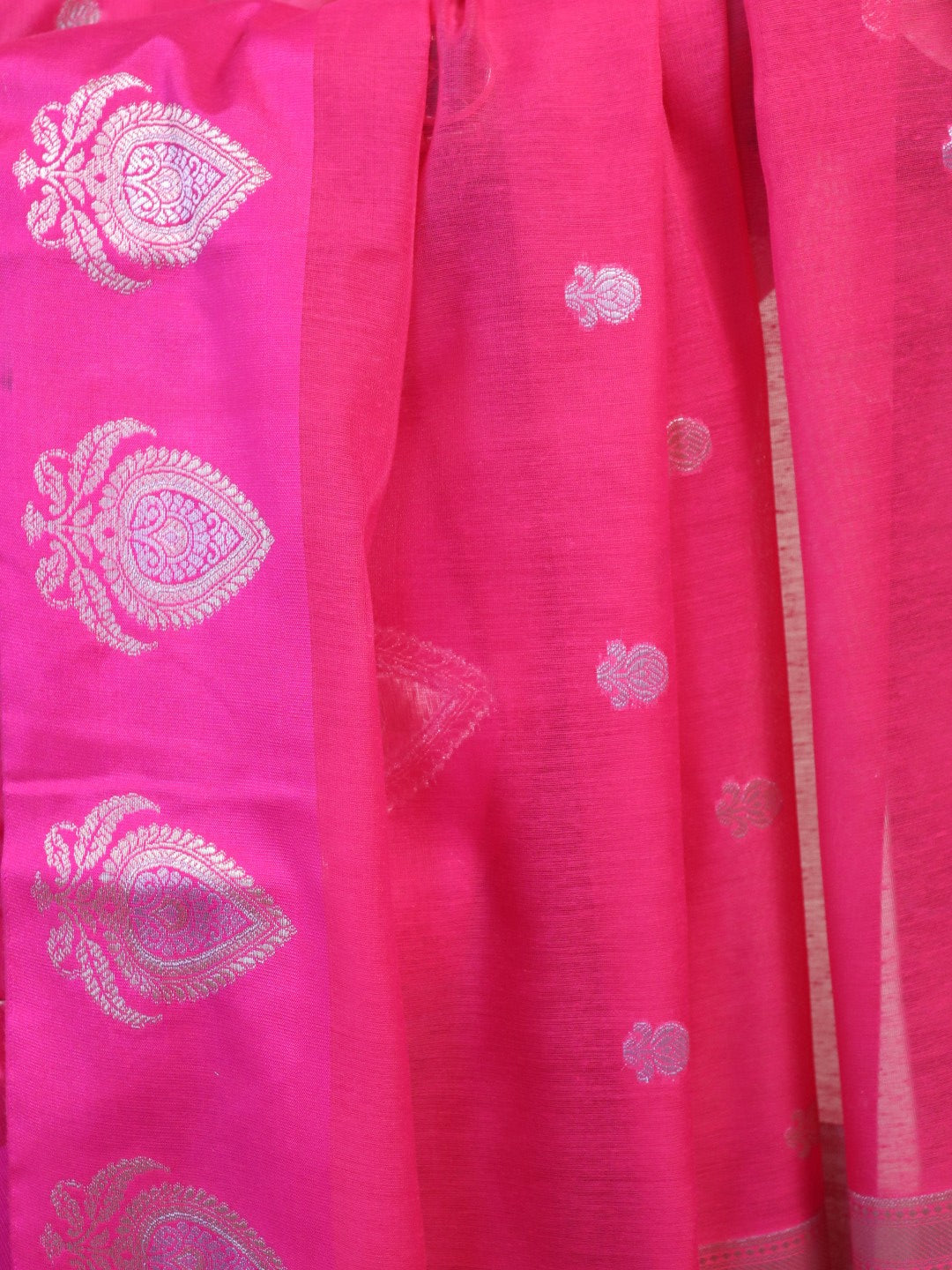 Banarasi Cotton Saree With Sona Rupa Weaving0 Pink