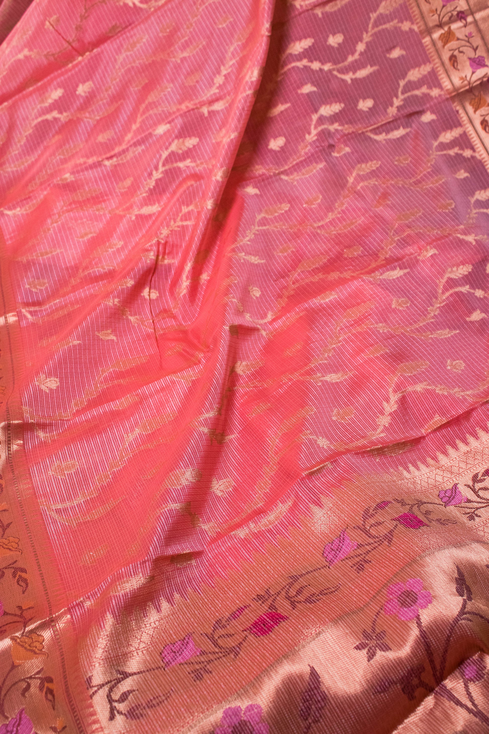 Banarasi Cotton With Paithani Weaved Border Jaal Buti - Peach
