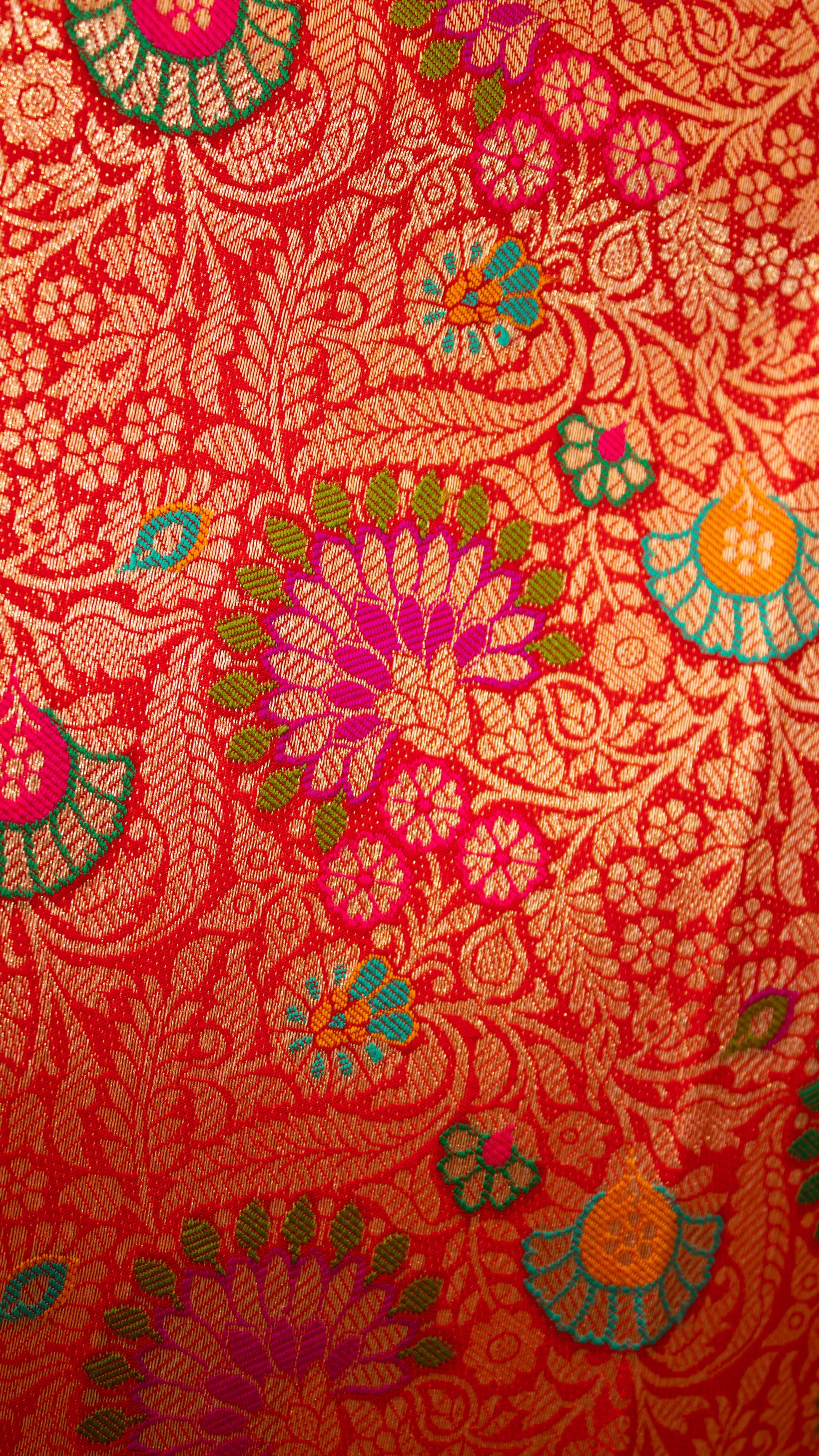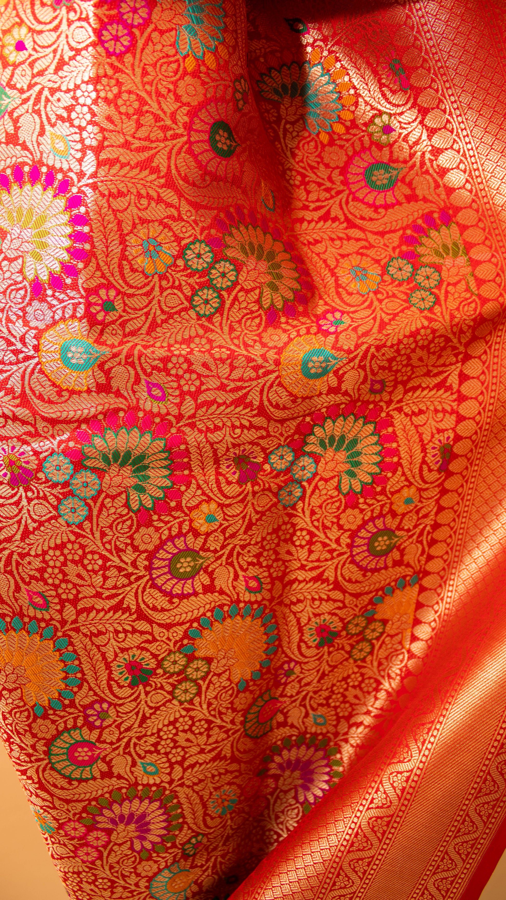 Banarasi Meenakari Jaal Weaving In Silk Fabric Red