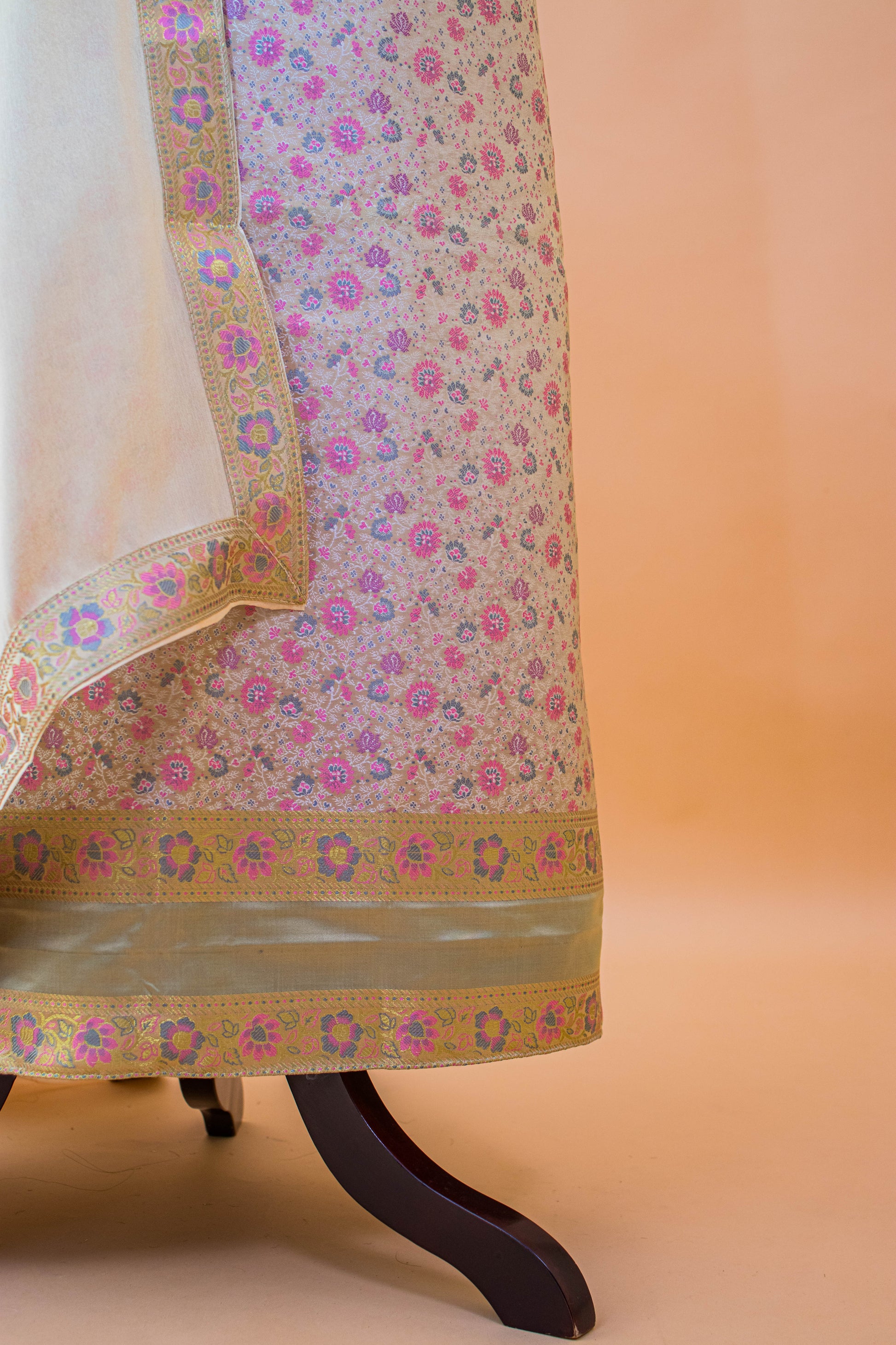 Banarasi Meenakari Tanchui Weaving Suit Fabric-Yellow