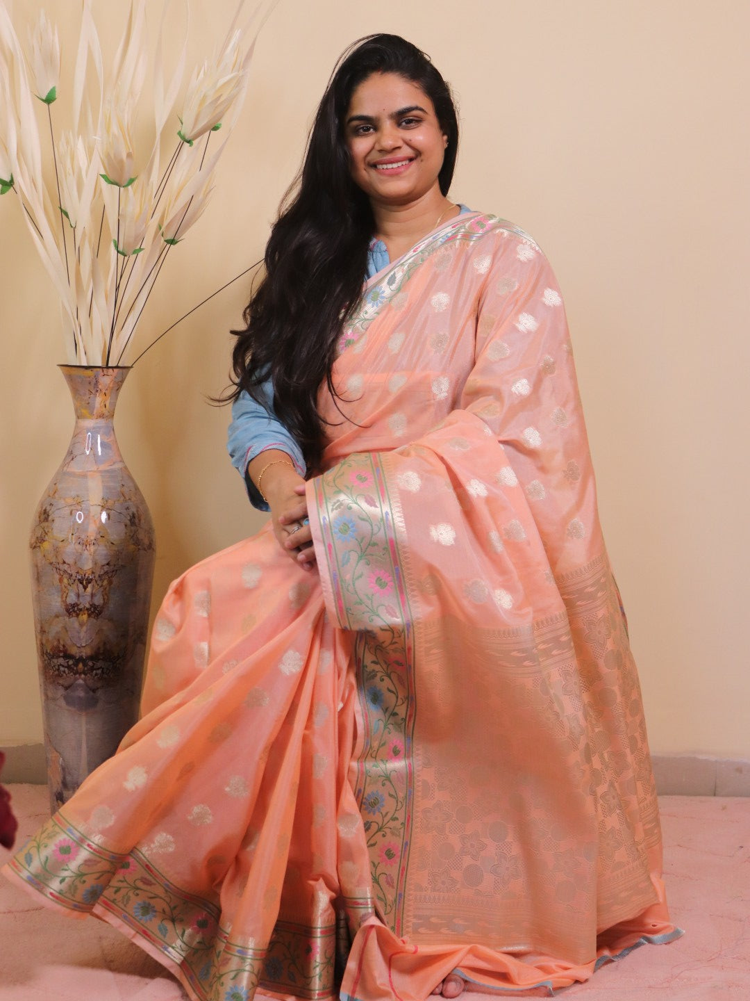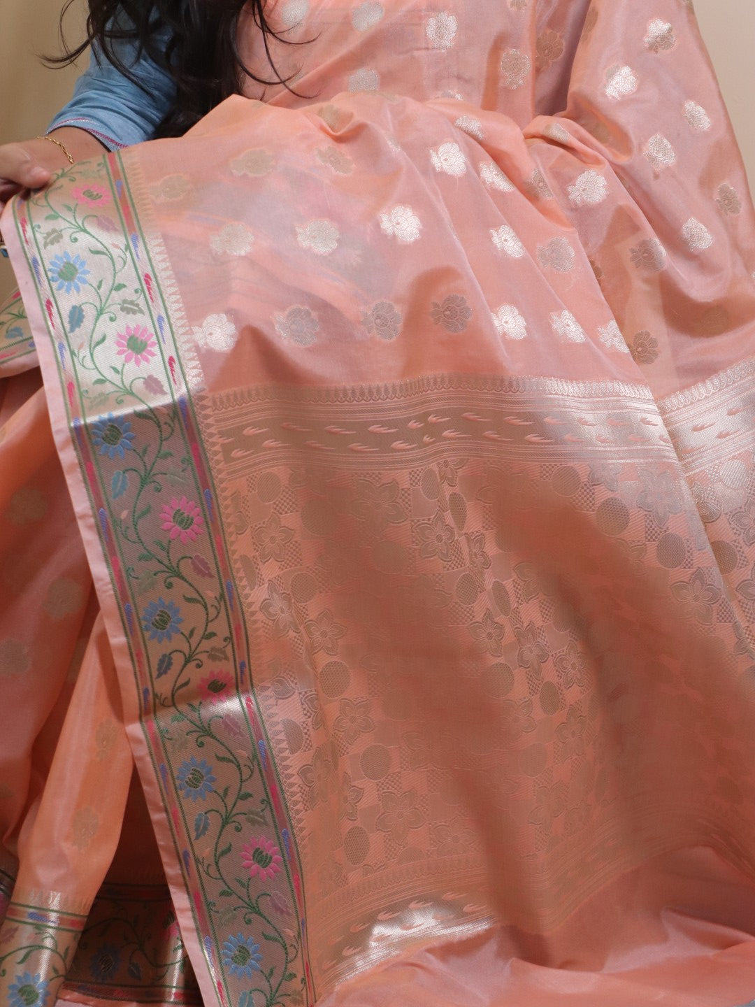 Banarasi Silk 2 Inch Buti With Paithni Border - Orange