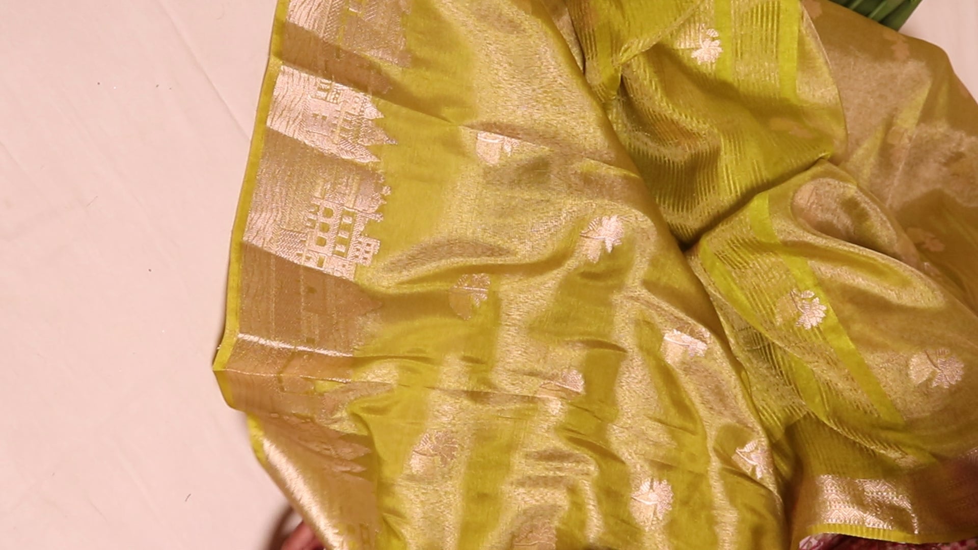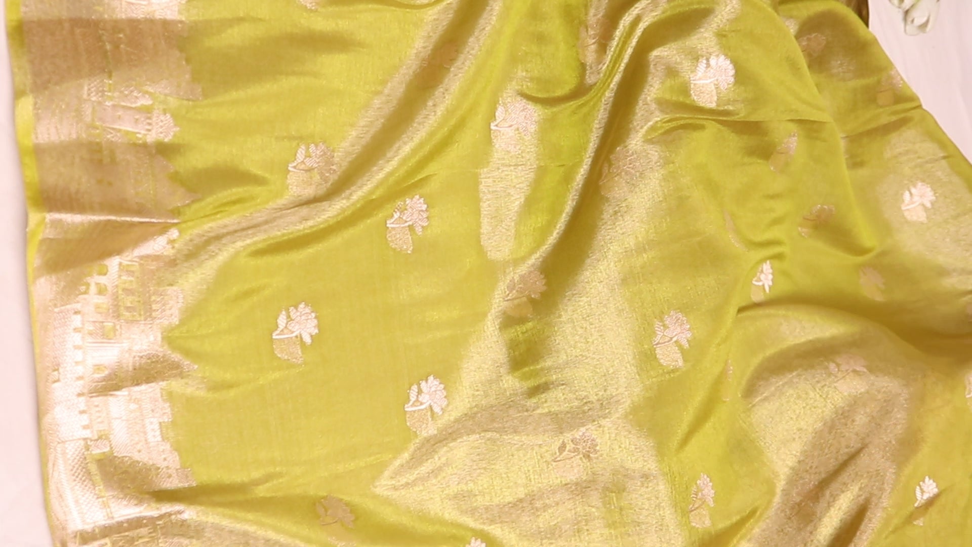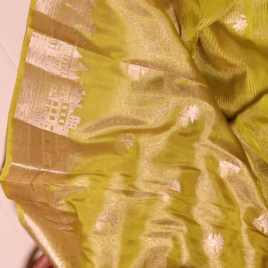 Banarasi Tissue With Ghaat Border - Yellow