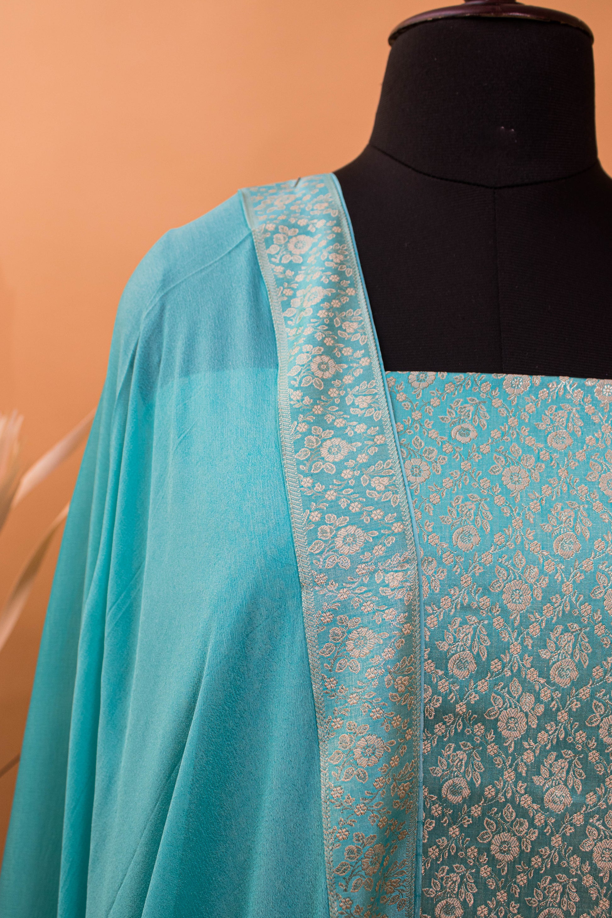 Banbarasi Tanchui Weaving Suit Fabric Georgette Dupatta-Blue