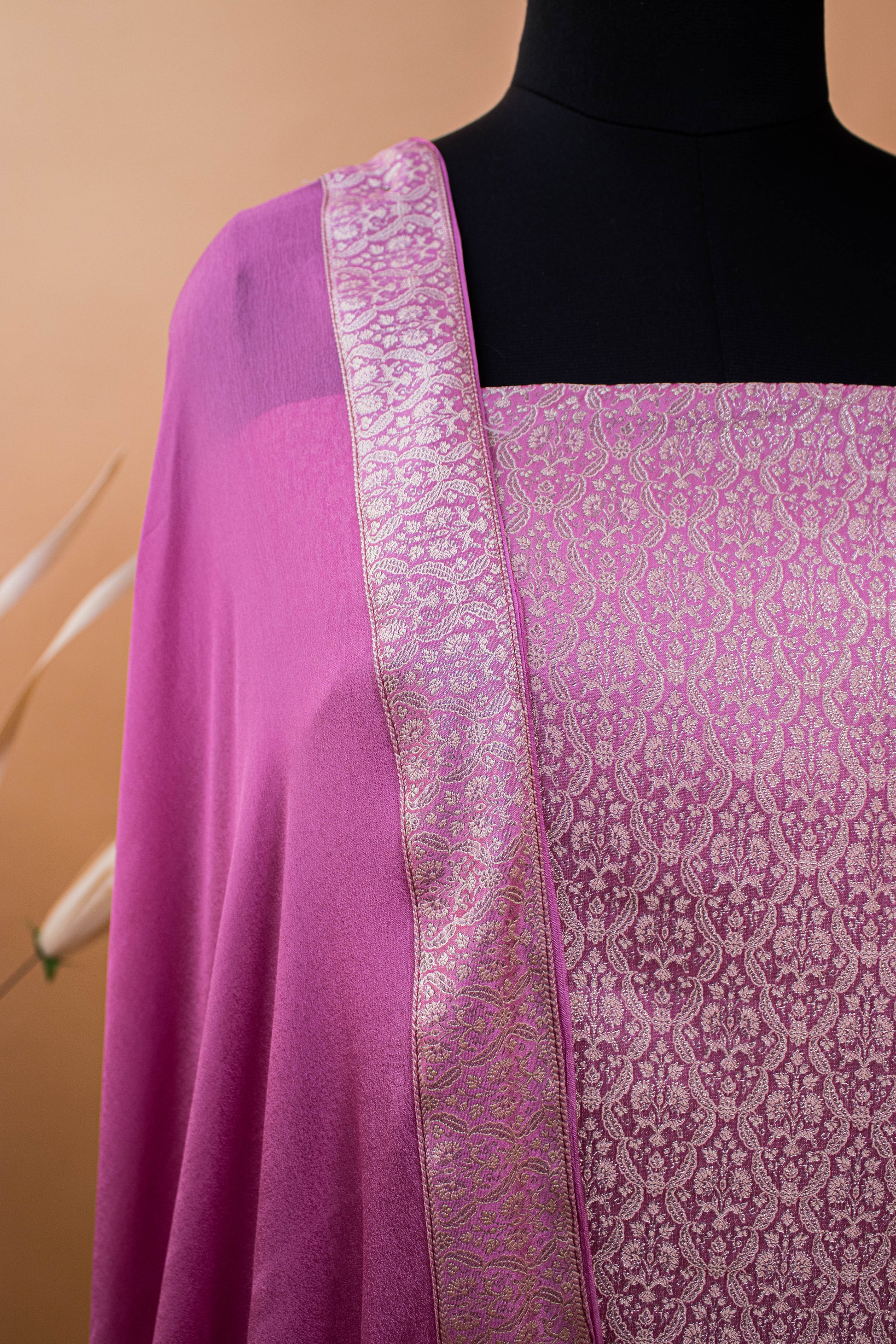Banbarasi Tanchui Weaving Suit Fabric Georgette Dupatta-Purple
