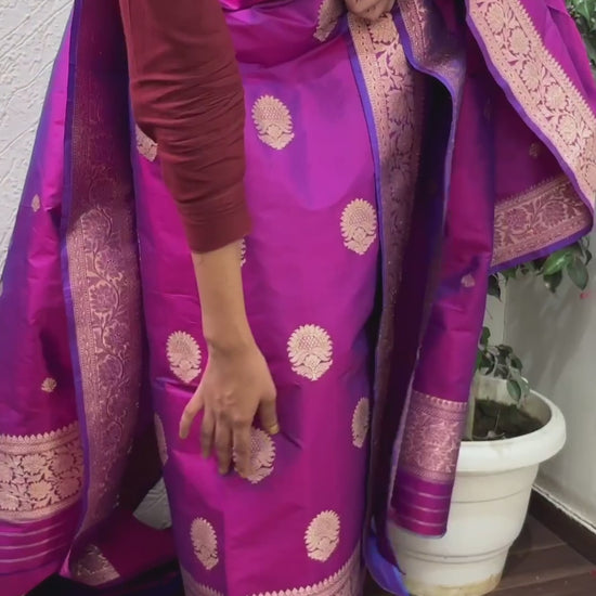Handloom Banarasi Pure Kataan Silk Suit - Purple