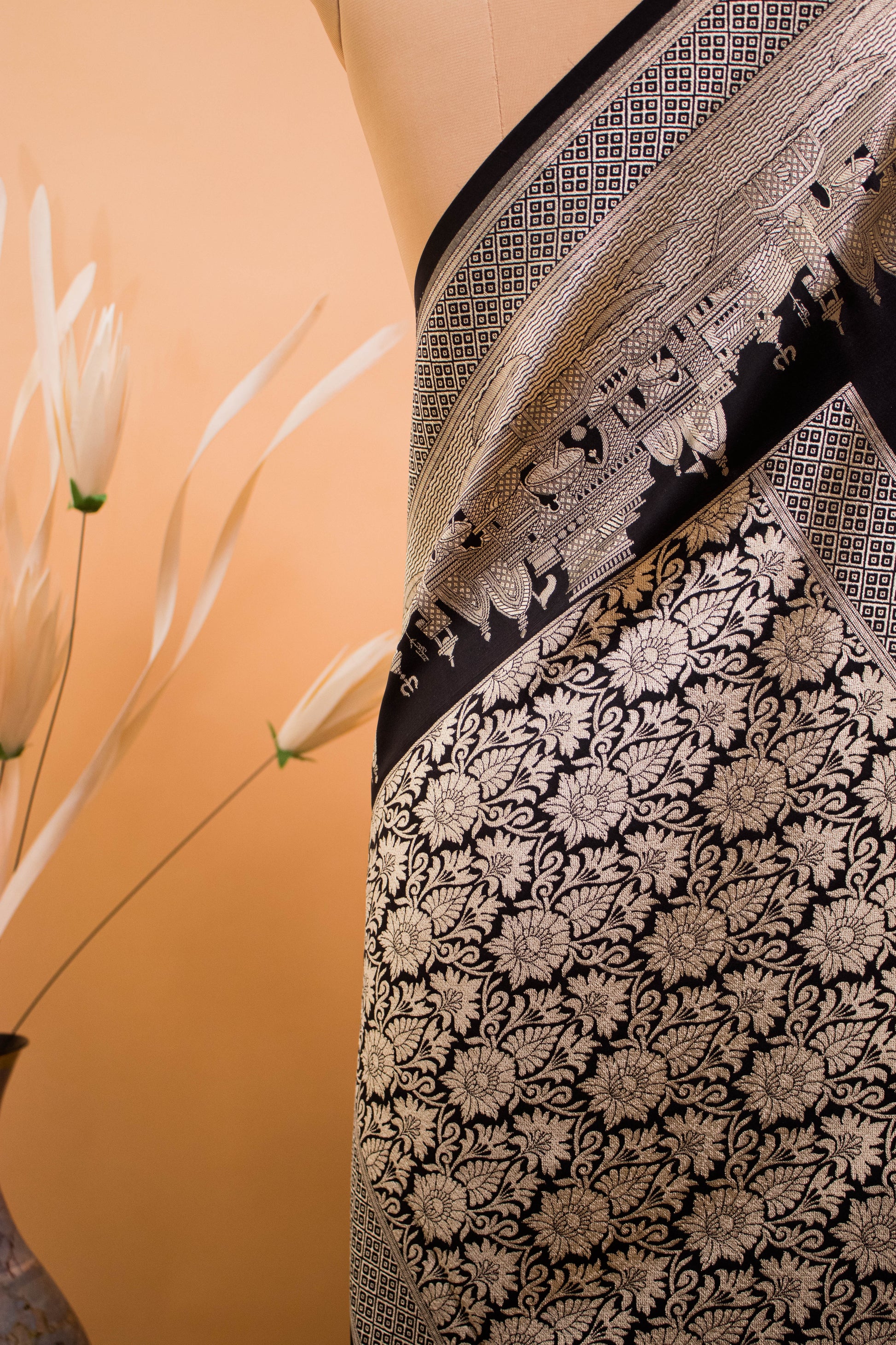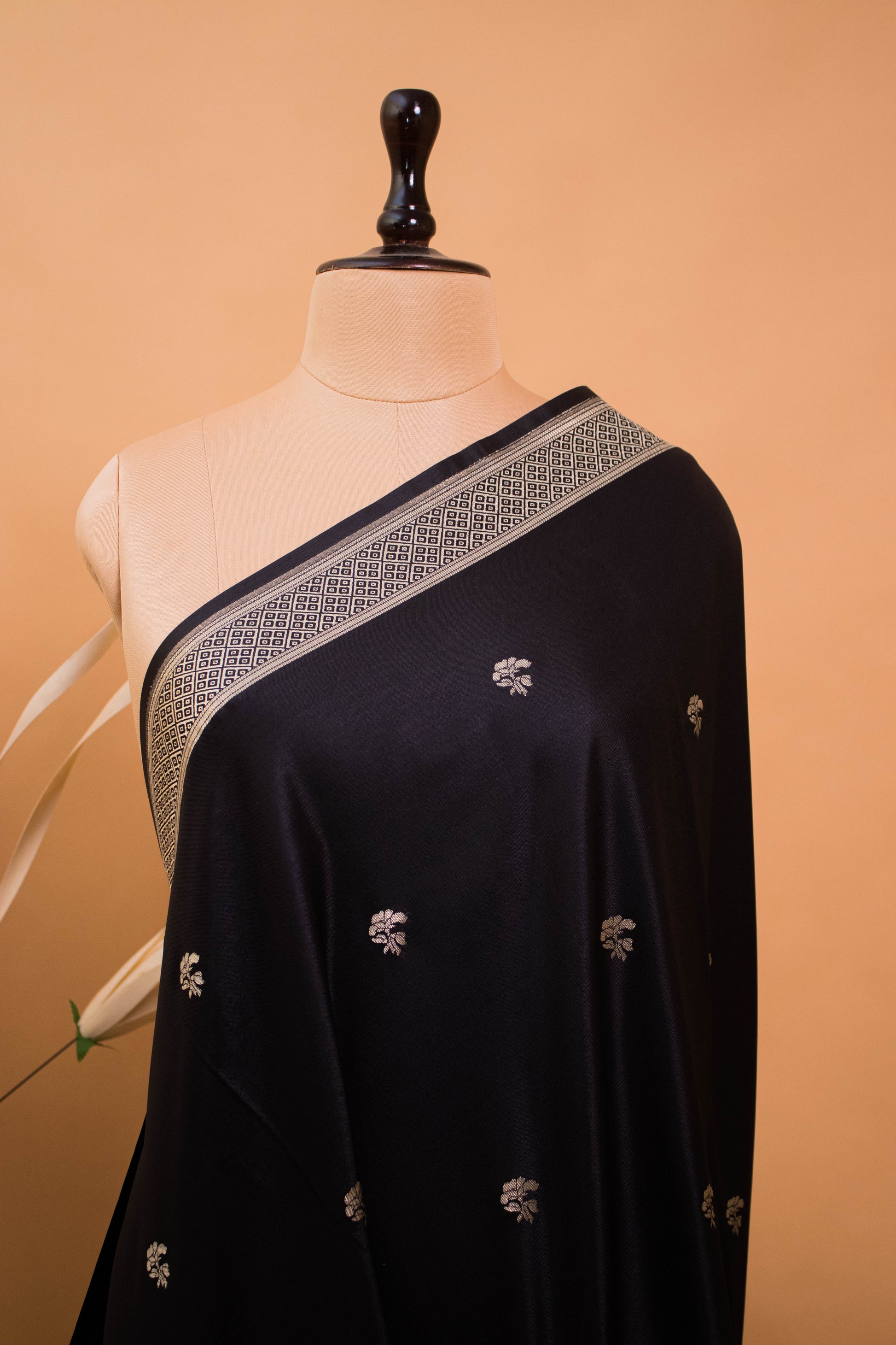 Contemporary Ghaat Border Weaving In Banarsi Silk - Black
