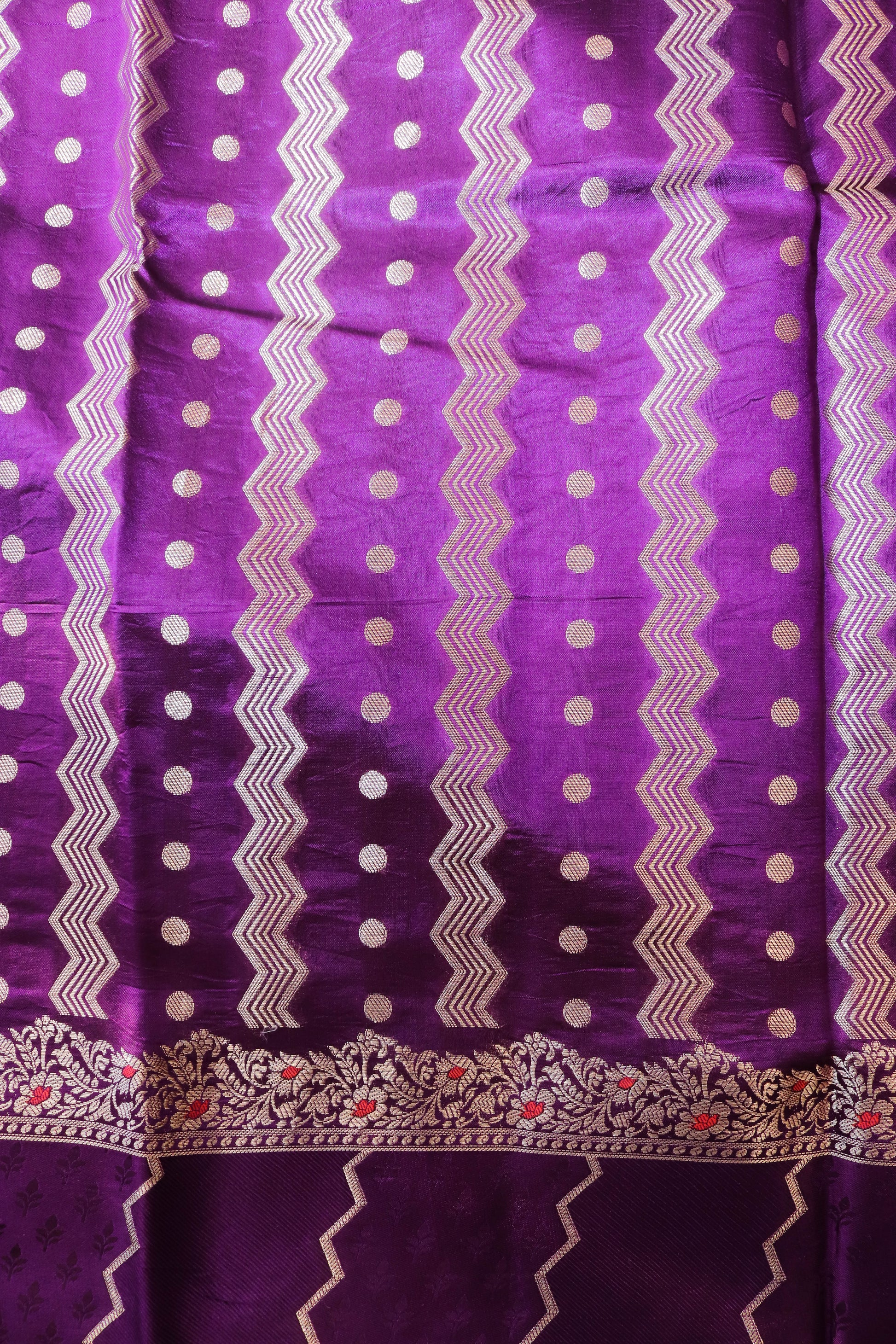 Contemporary Weaving Beautifull Double Border Hand Motif In Pure Silk Purple