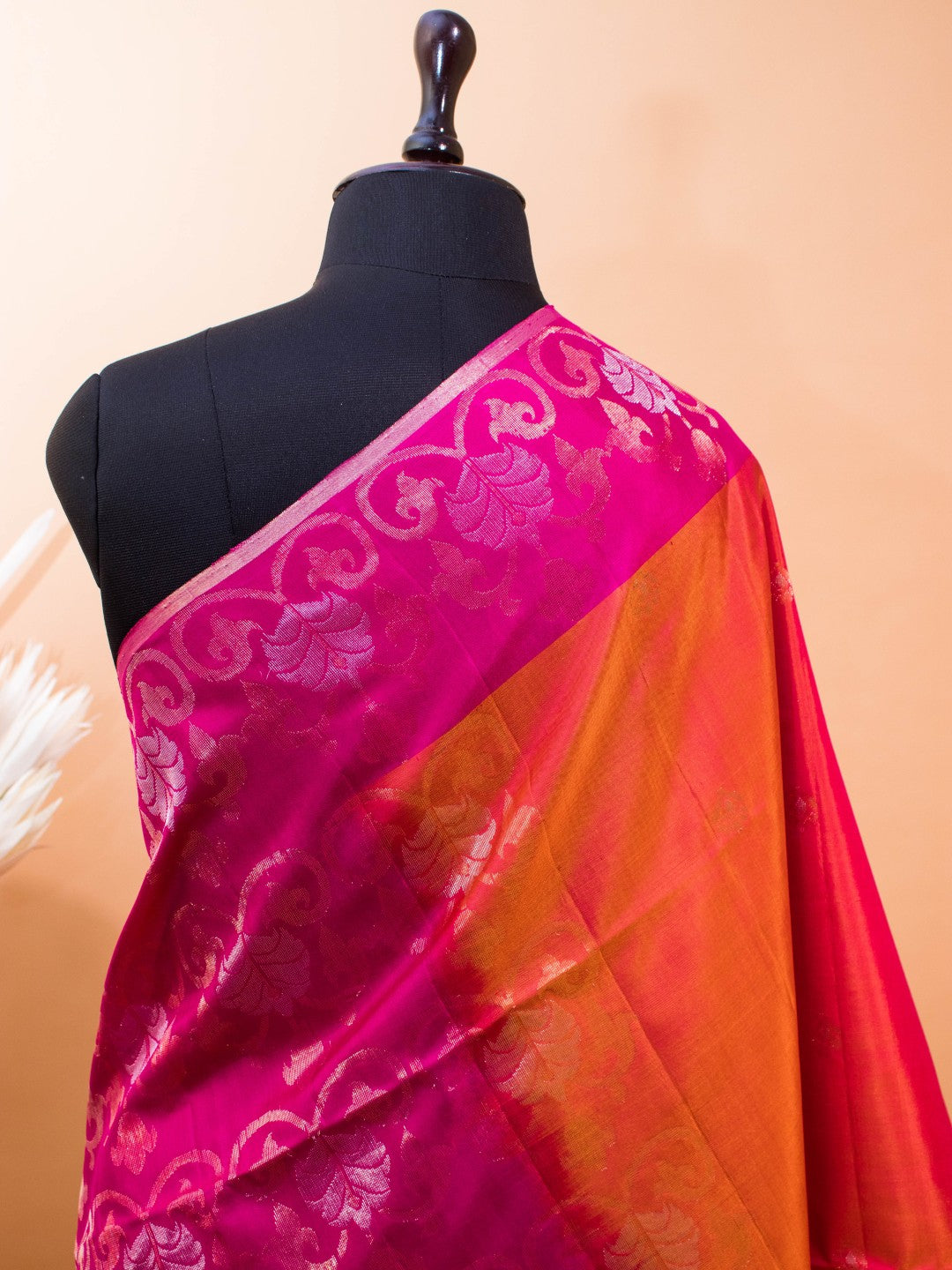 Contemporary Zari Weaving In Pure Silk - Orange