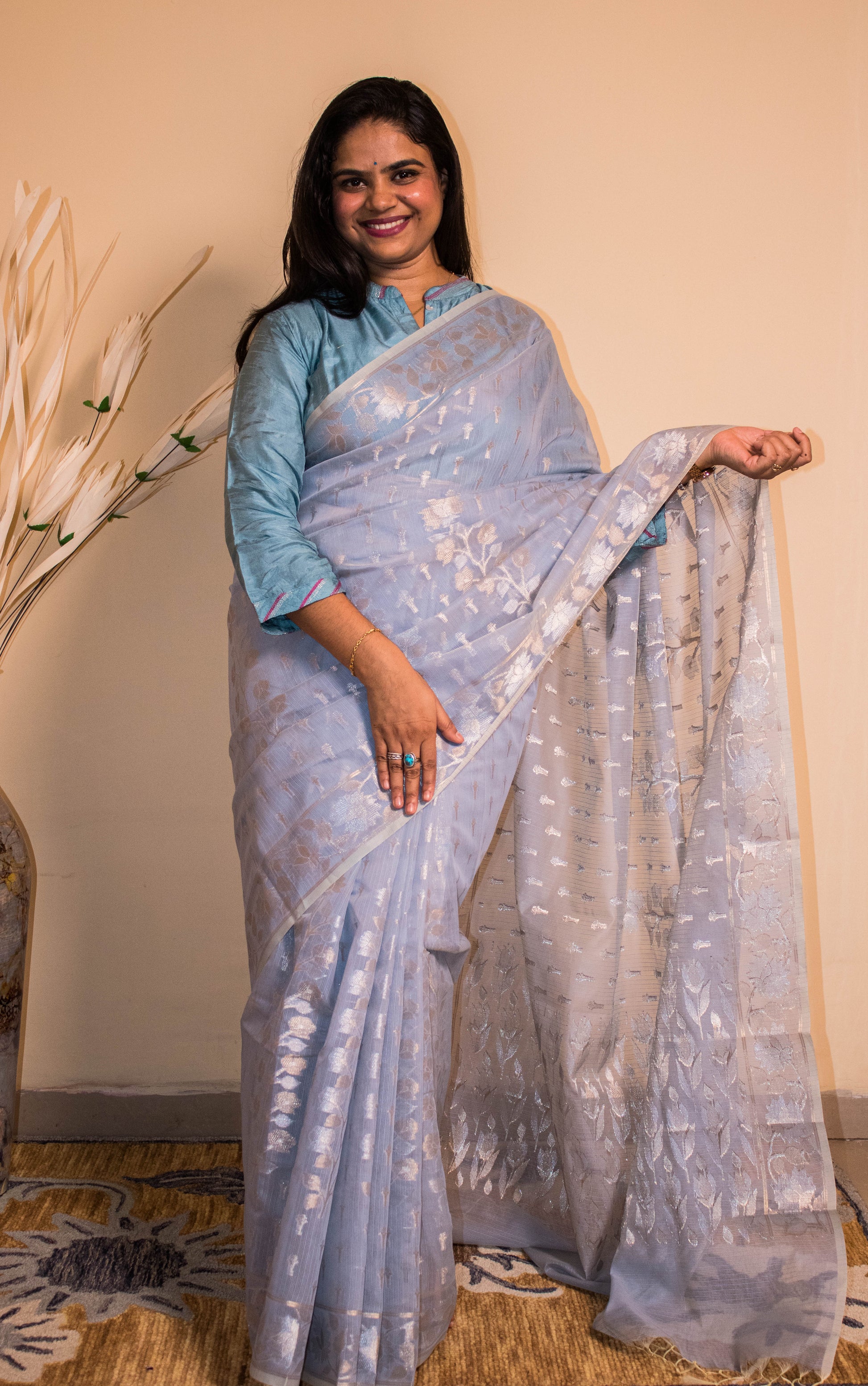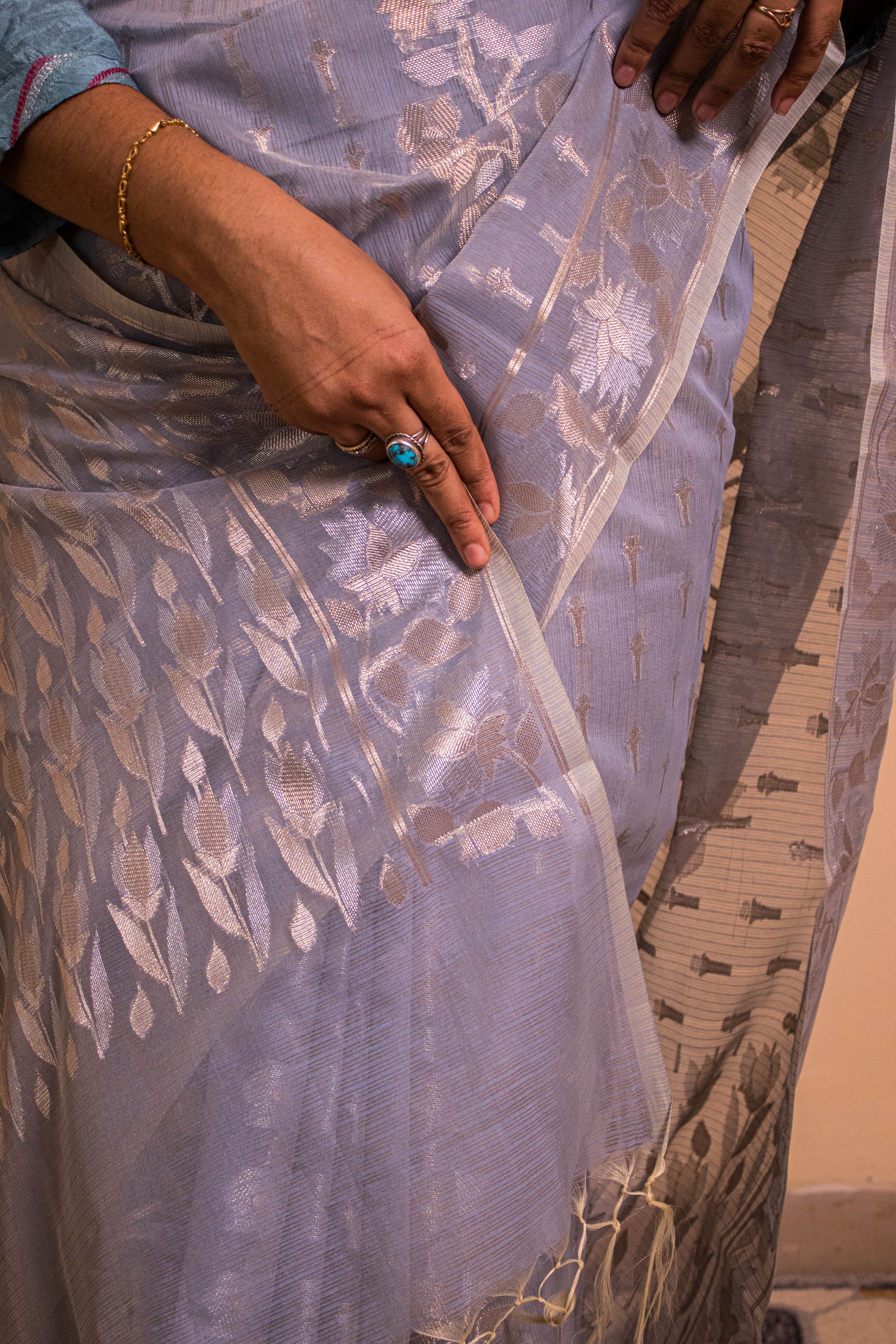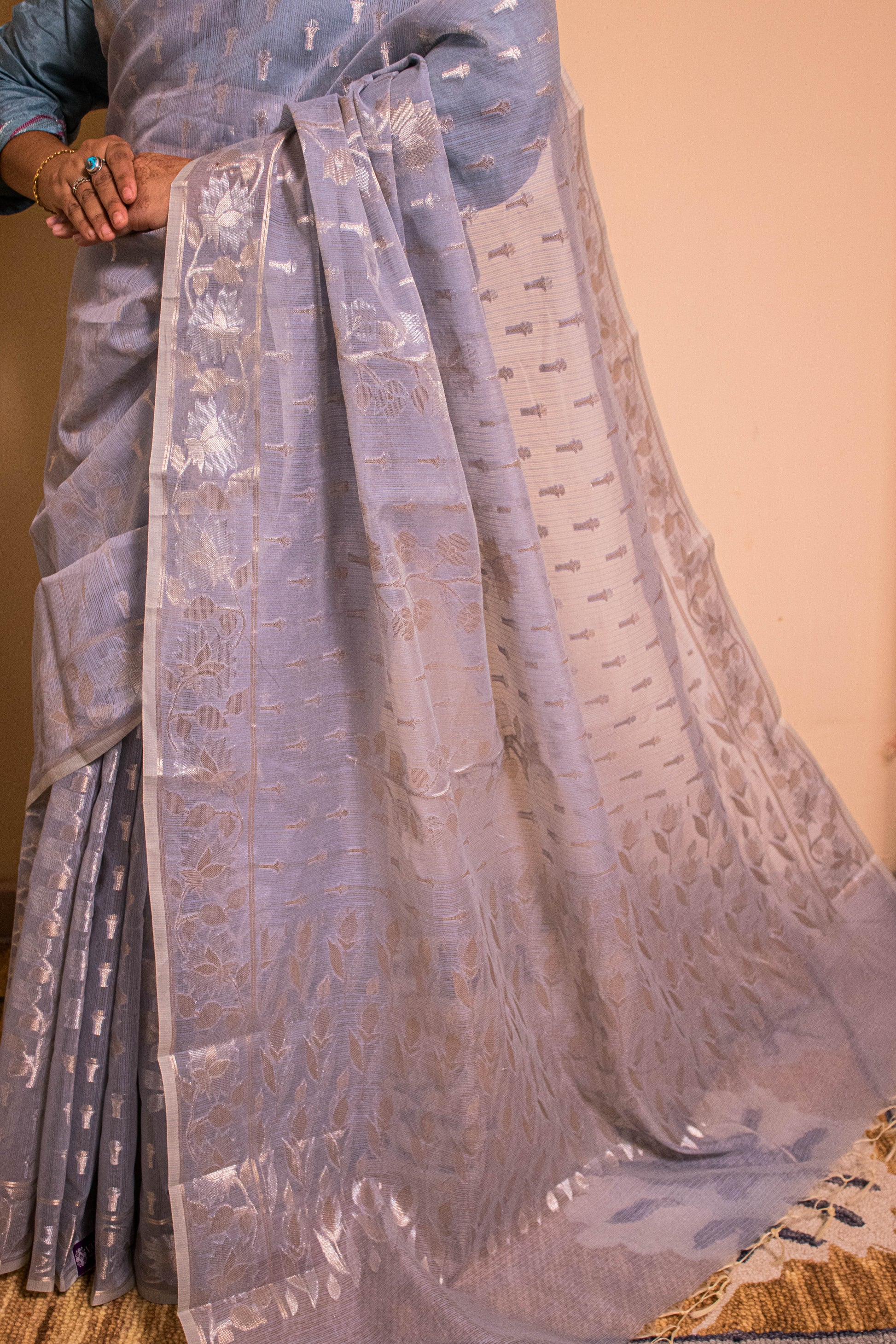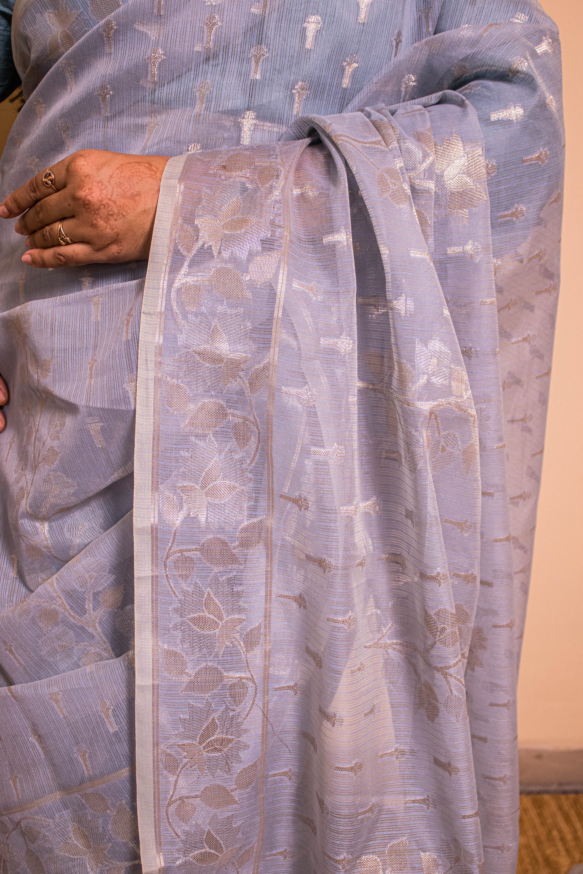 Cottan BS Jamdani Border Golden Silver Weaving - Purple