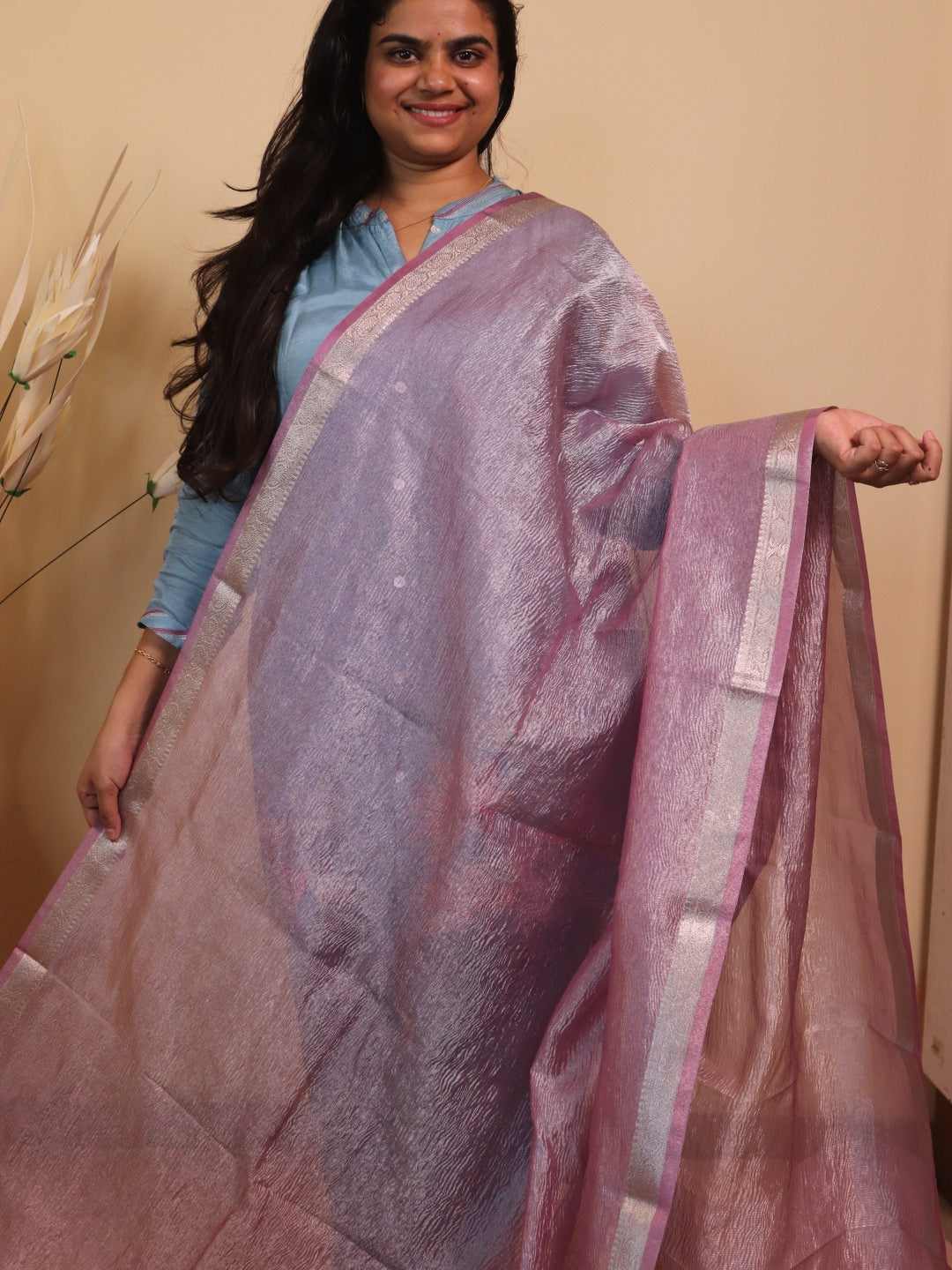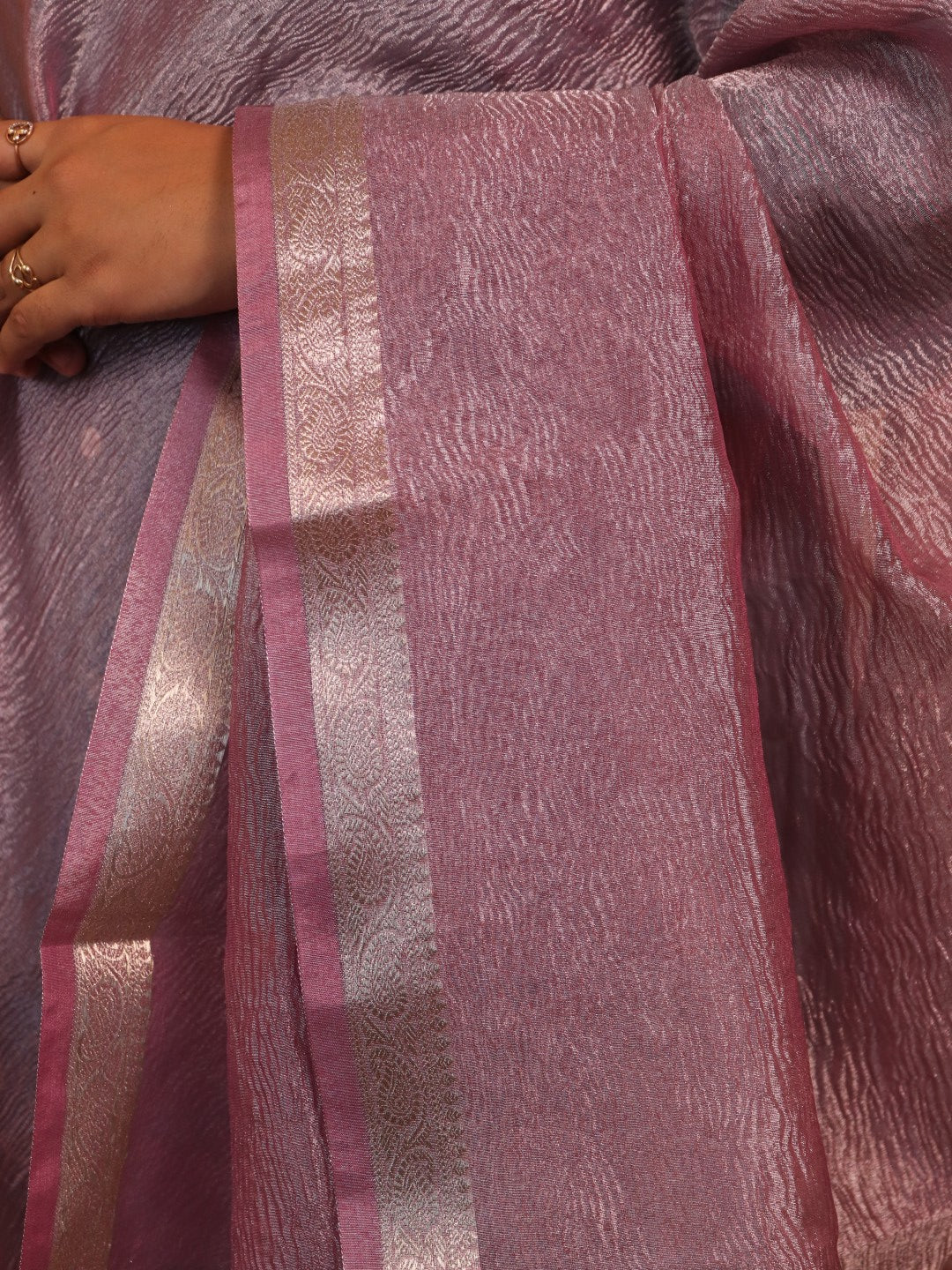 Crush Tissue With Thin Banarasi Border - Pink