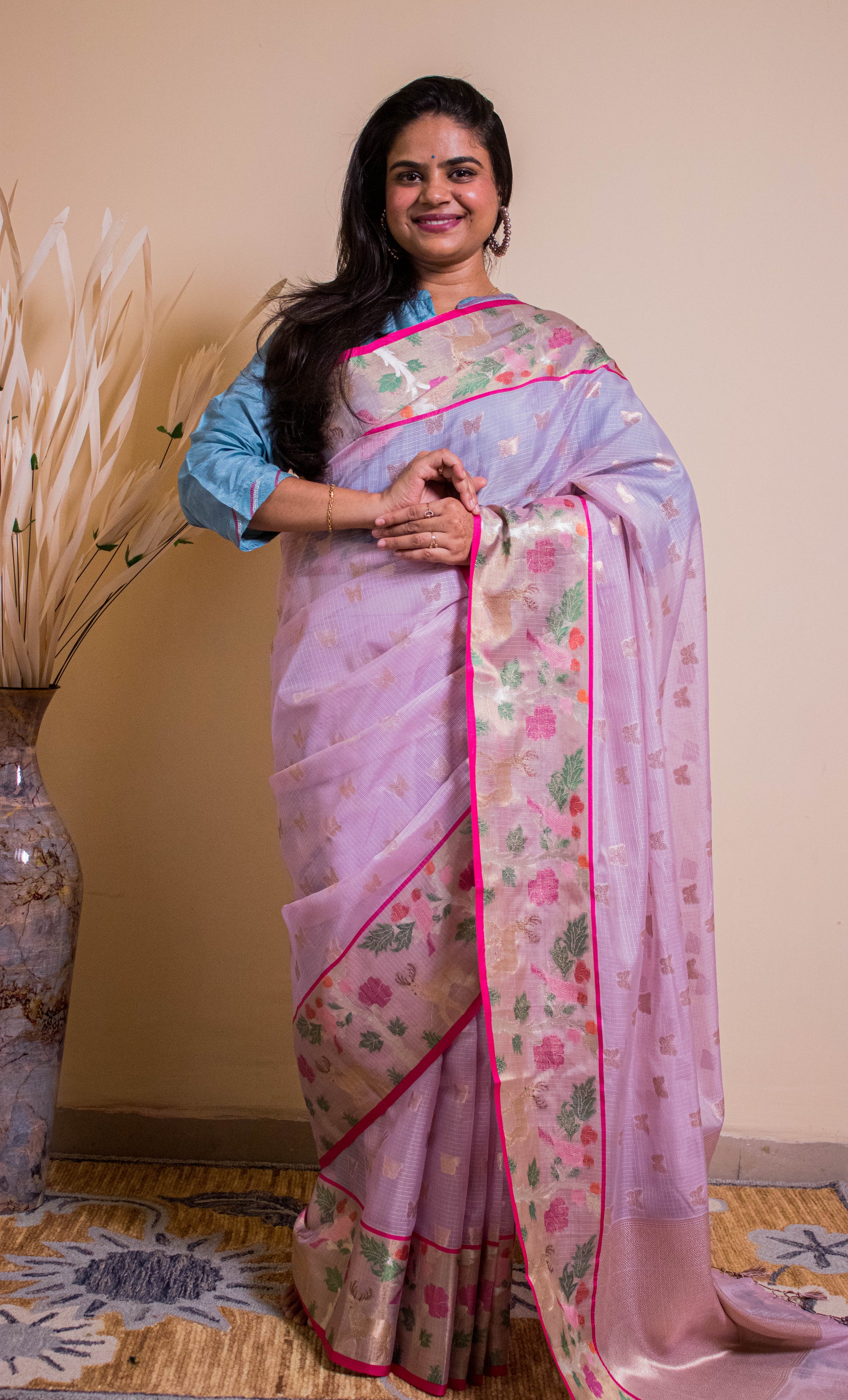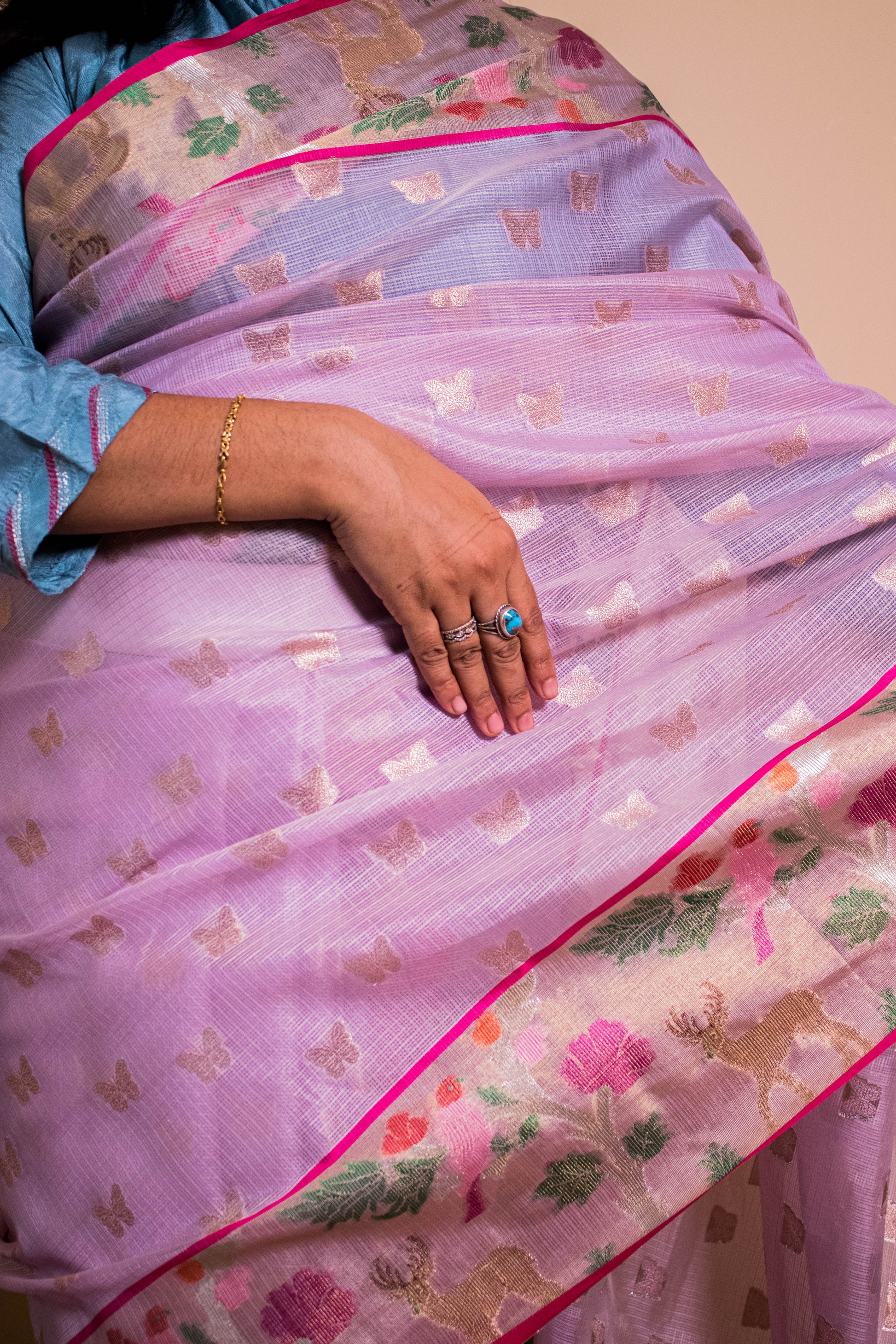 Deer And Bird Motif Paithani Weaved Border Butterfly Buti - Purple