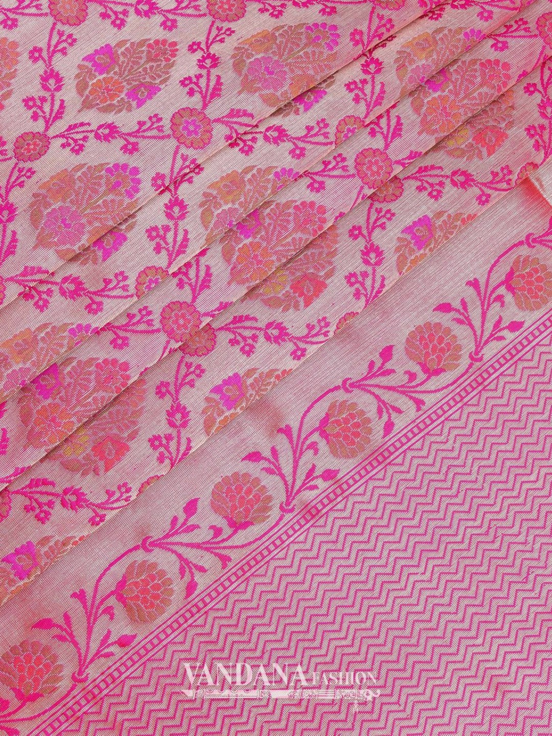 Add a touch of timeless beauty to your collection with our Exquisite Handloom Kadhua Weave edged in pink. This fabric exemplifies the artistry of traditional weaving techniques, featuring intricate patterns that are both elegant and unique.
