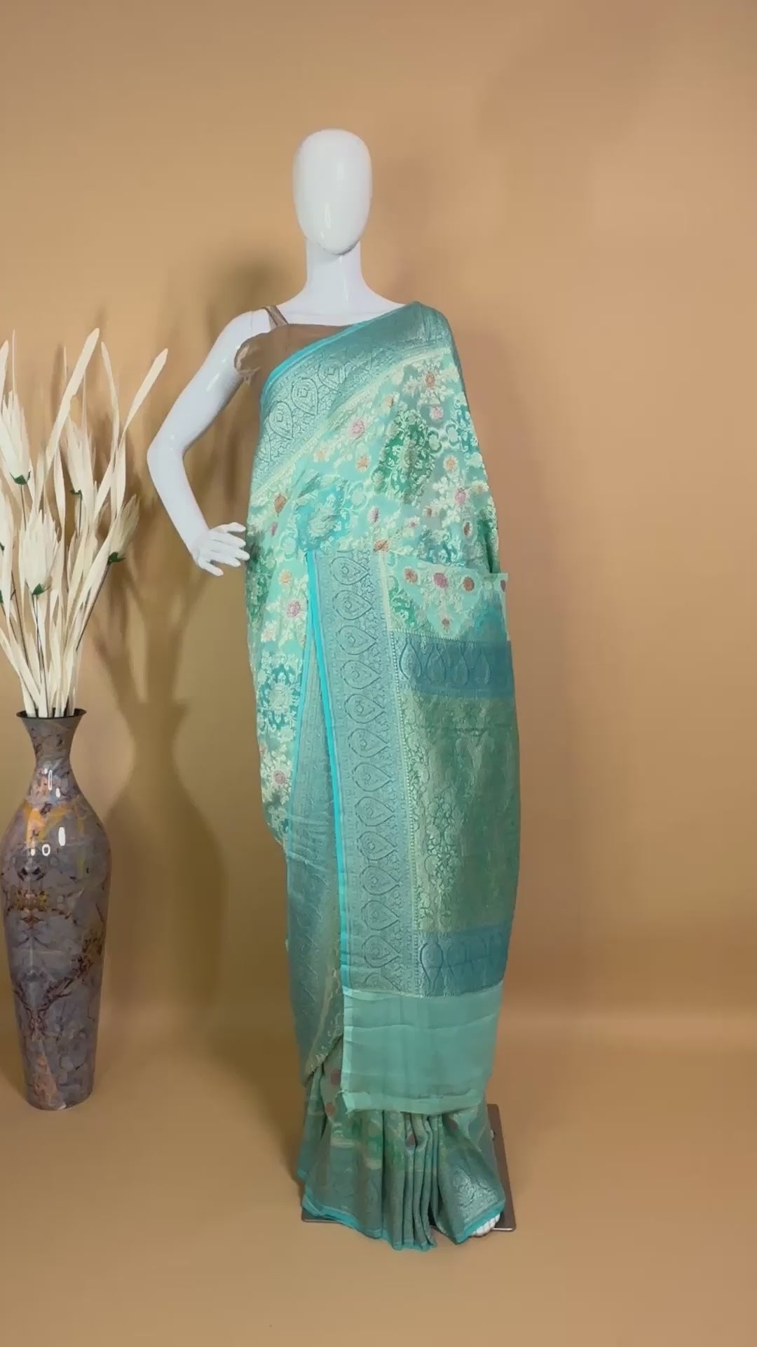 Handloom Banarasi Pure Khaddi In Water Zari Rangkaat Style Blue