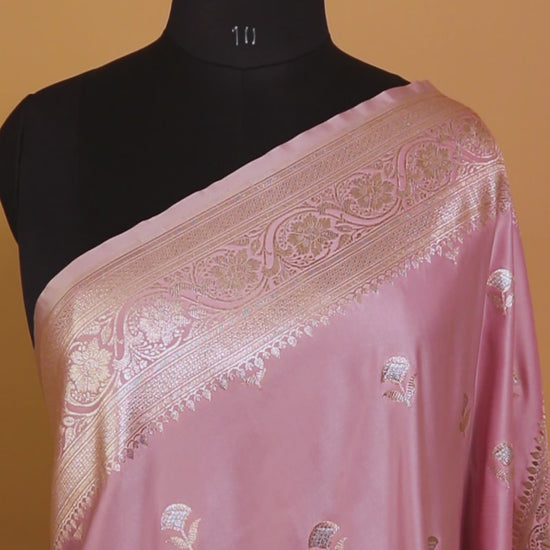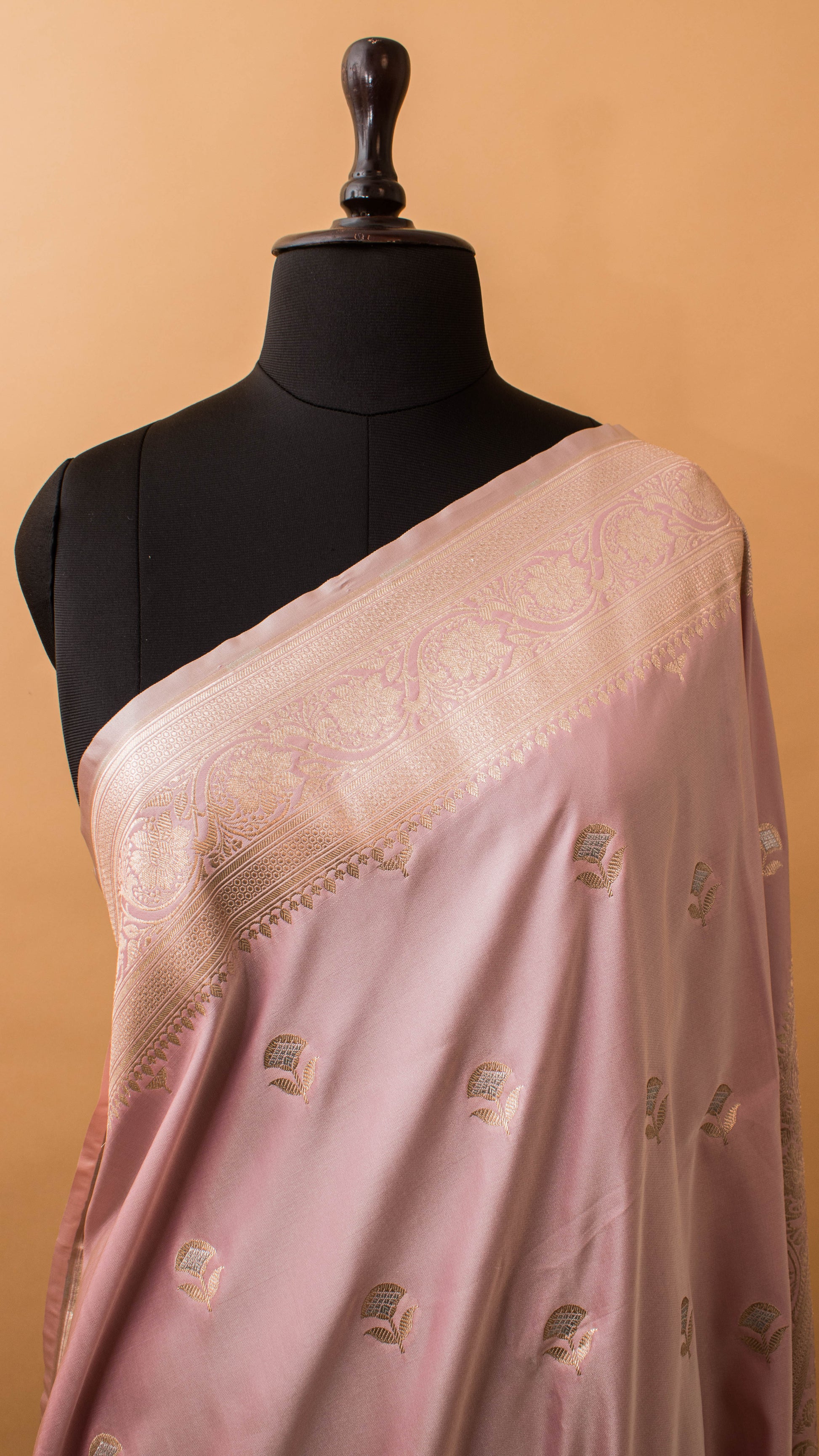 Mashru Silk In Alphi Buti Design In Traditional Banaras Pink
