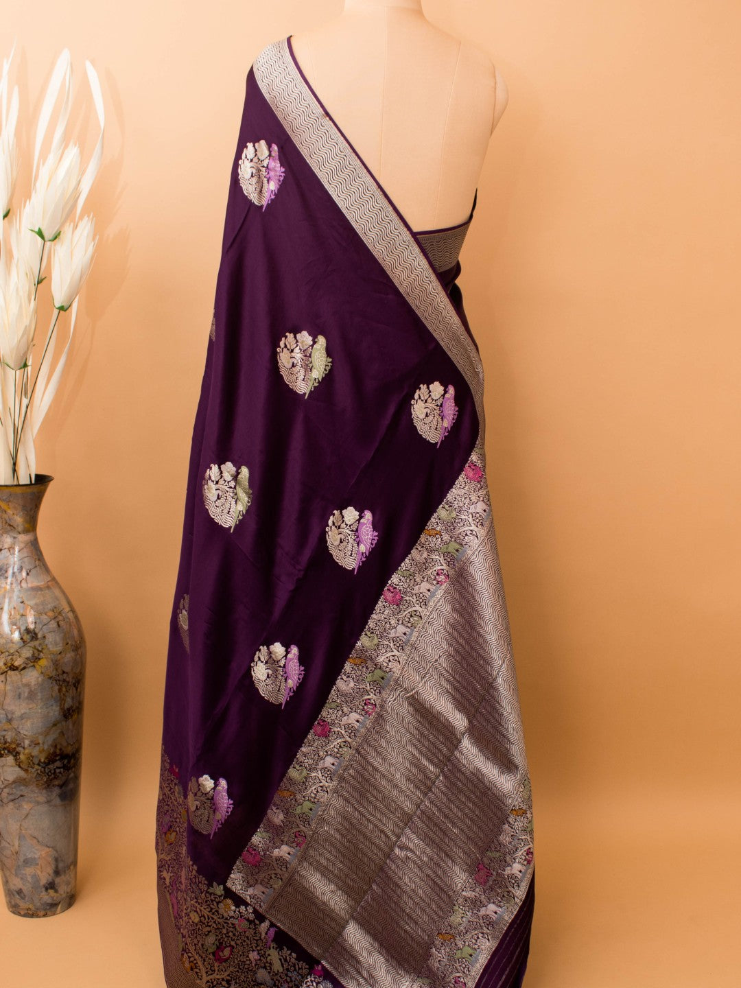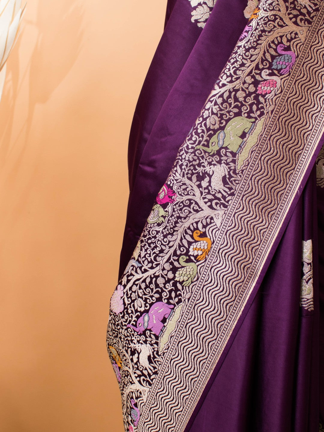 Mashru Silk Meenakari Jungle Theme Border - Purple