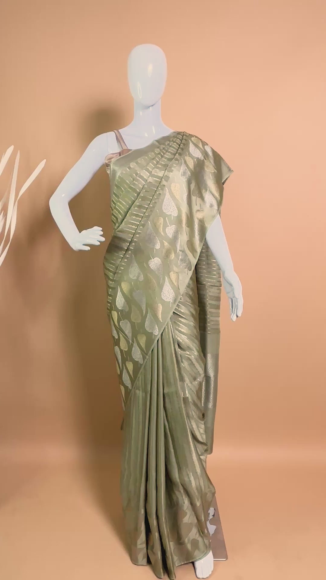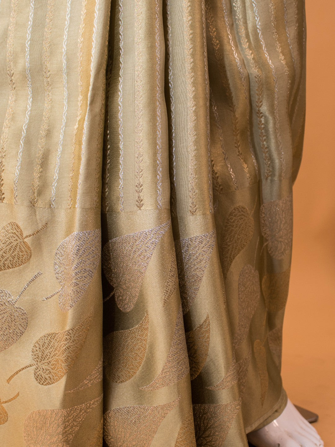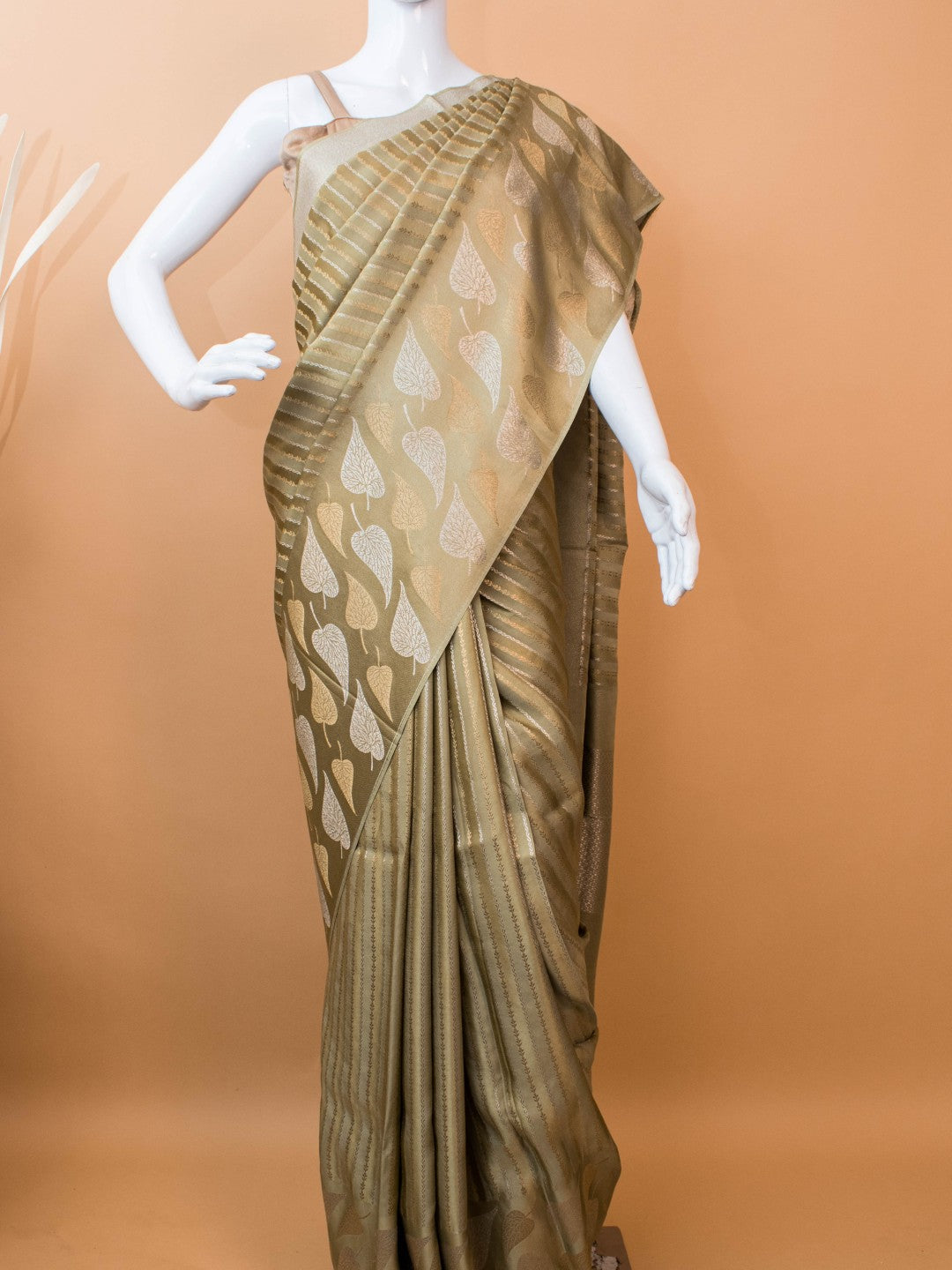 Mashru Silk With Contemporary Leaves Weaving Border - Brown