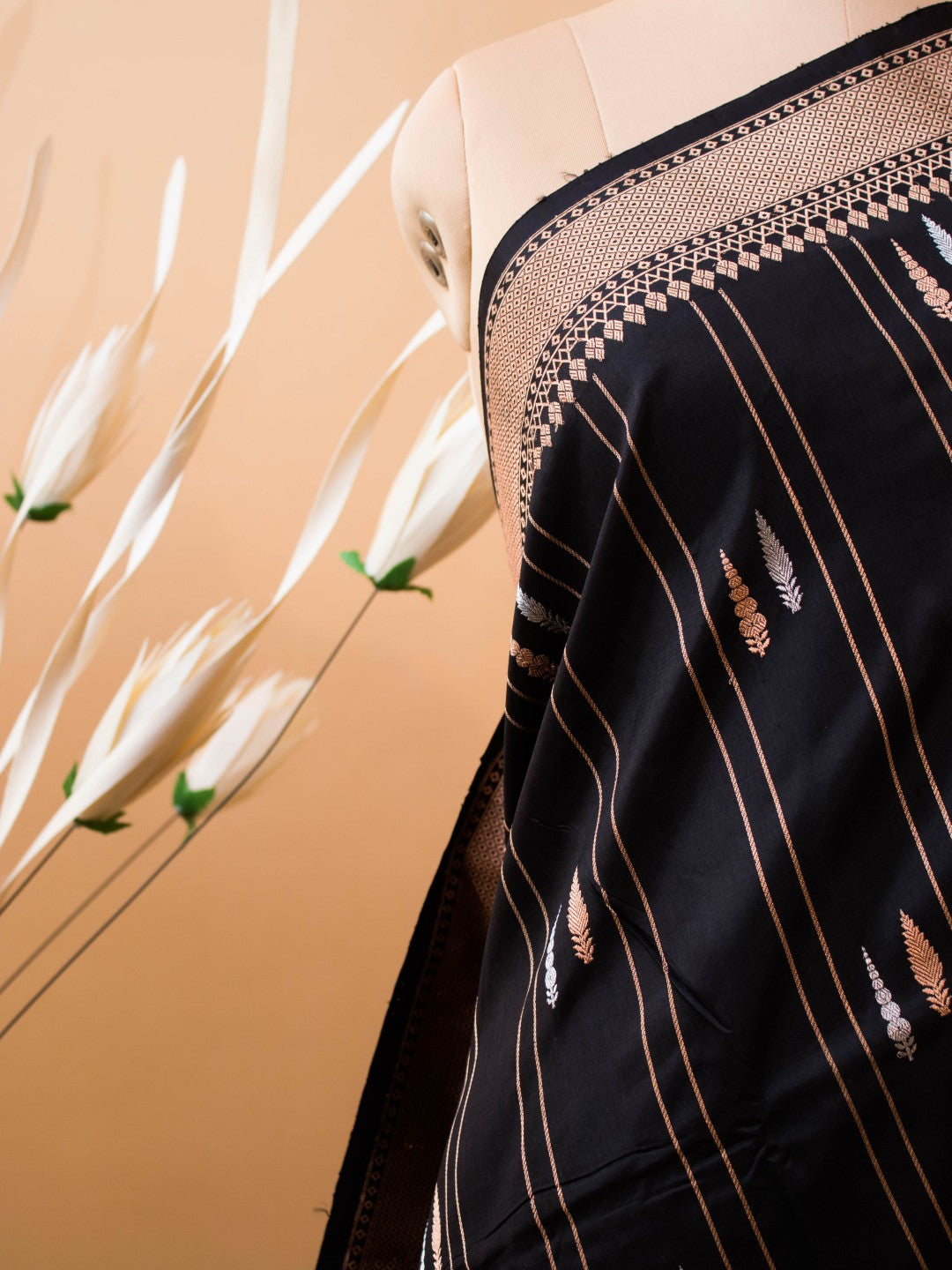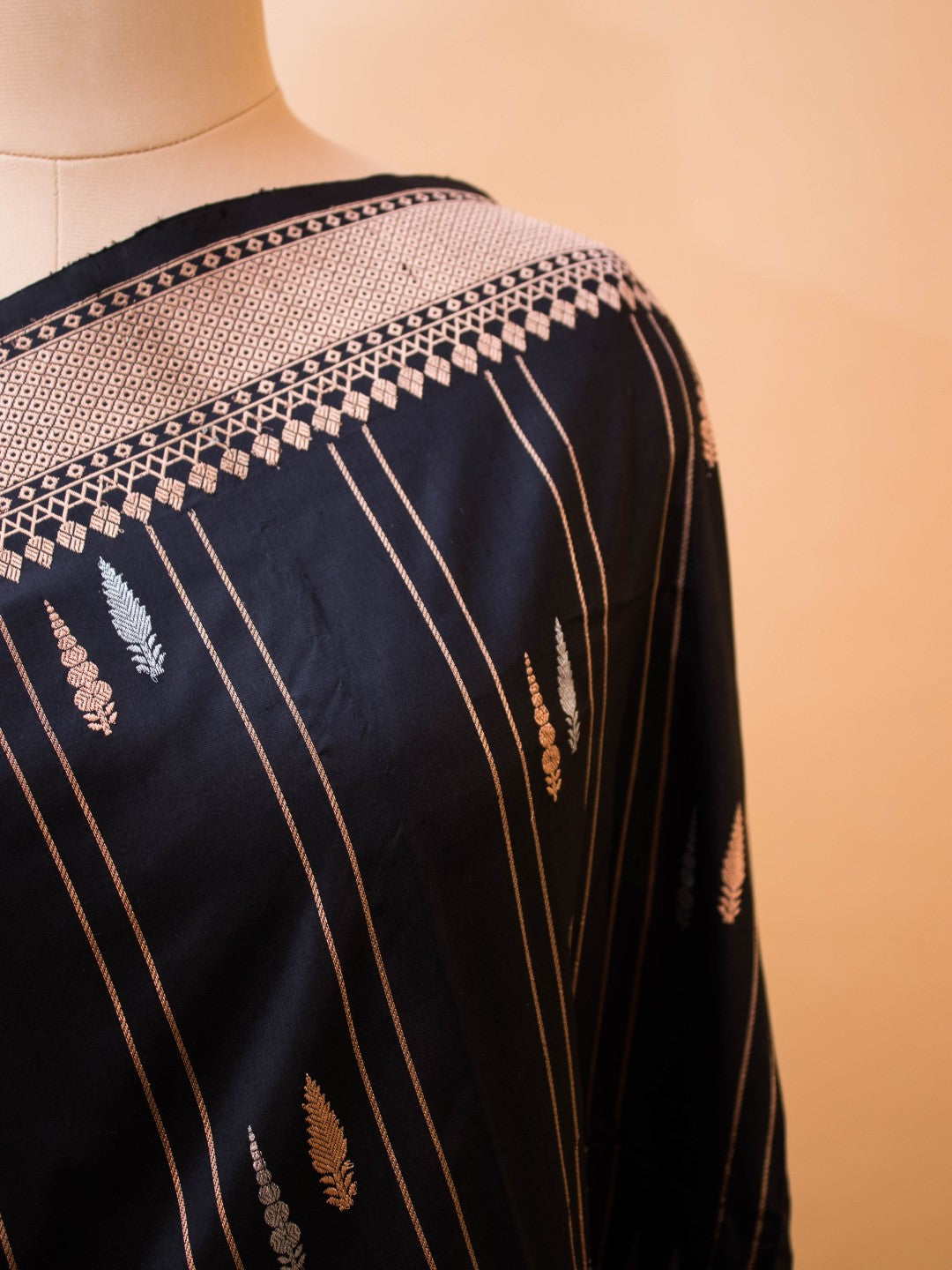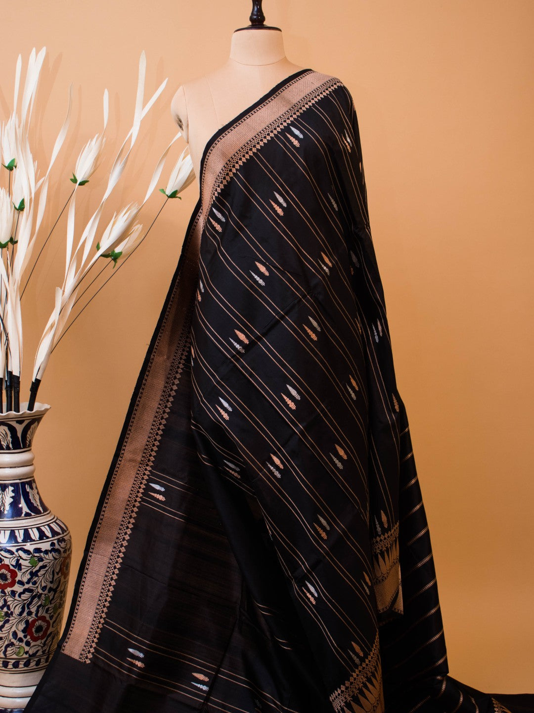 Pure Kataan Silk With Silver N Copper Zari On Black Color