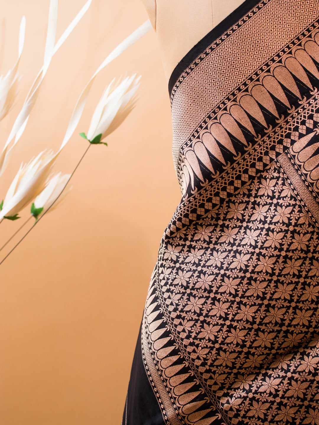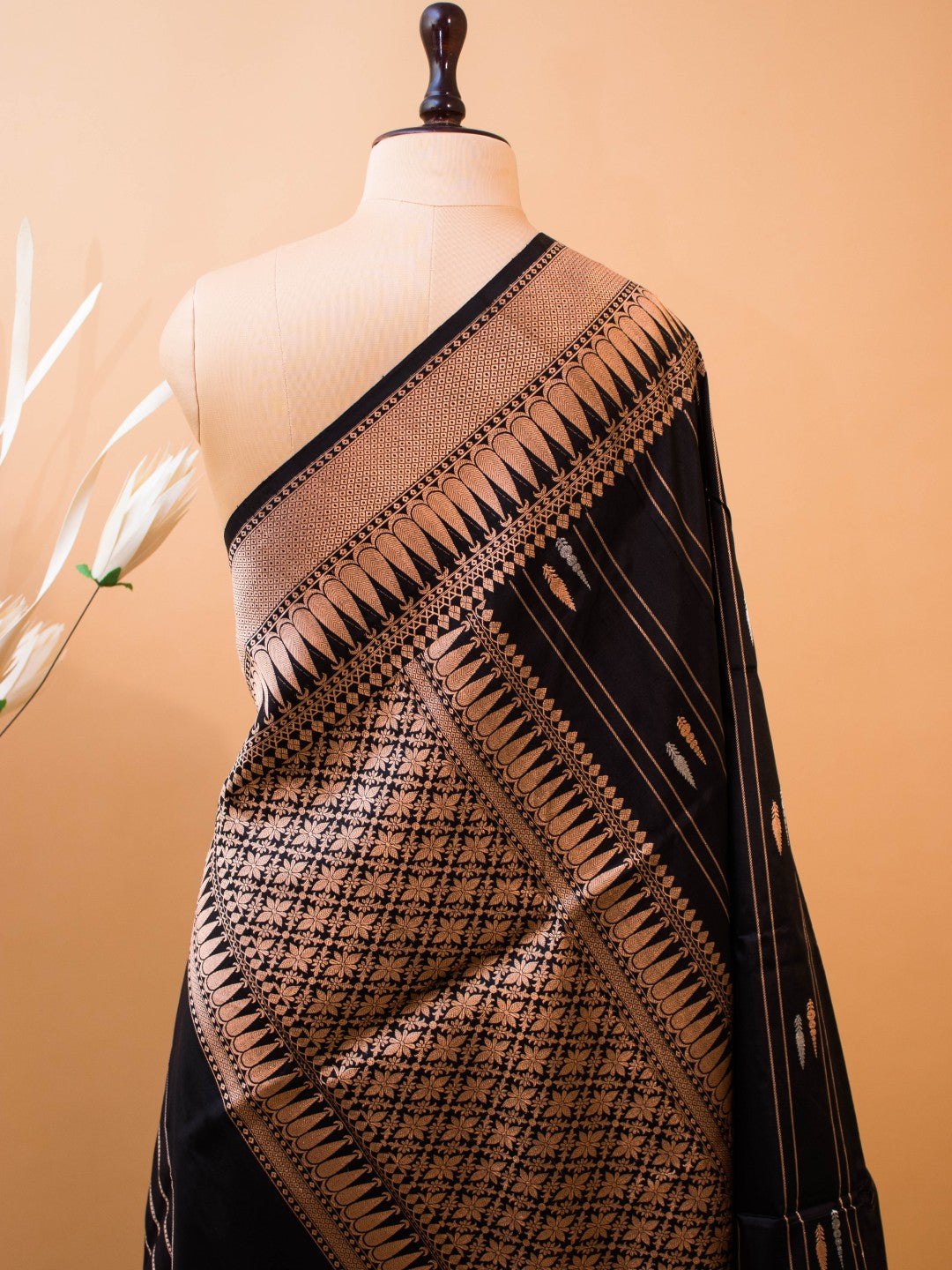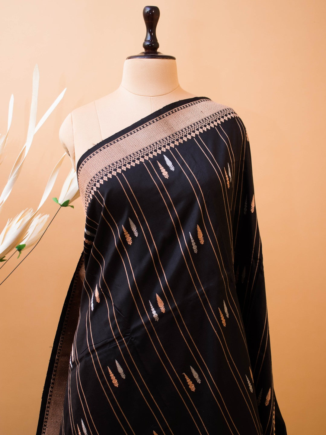 Pure Kataan Silk With Silver N Copper Zari On Black Color
