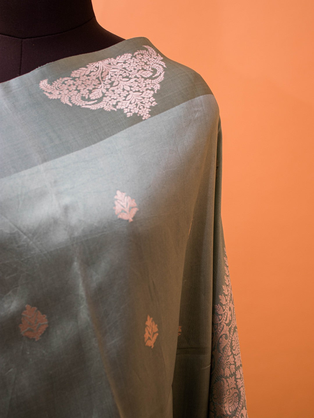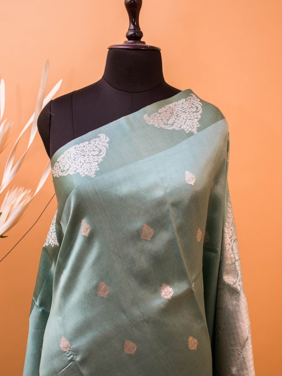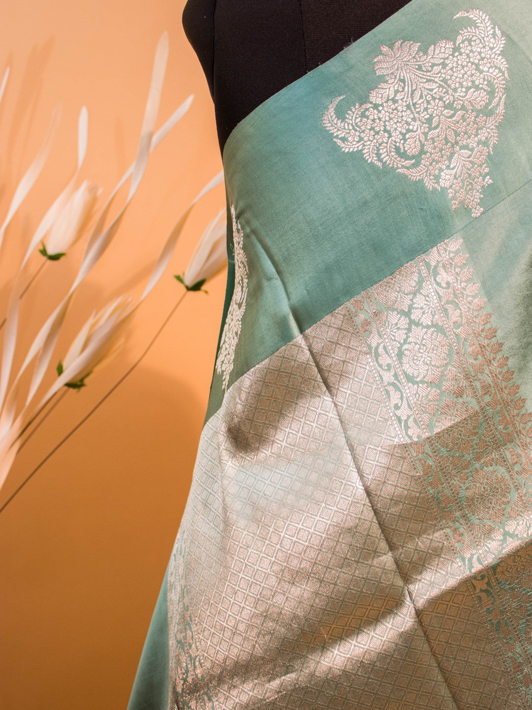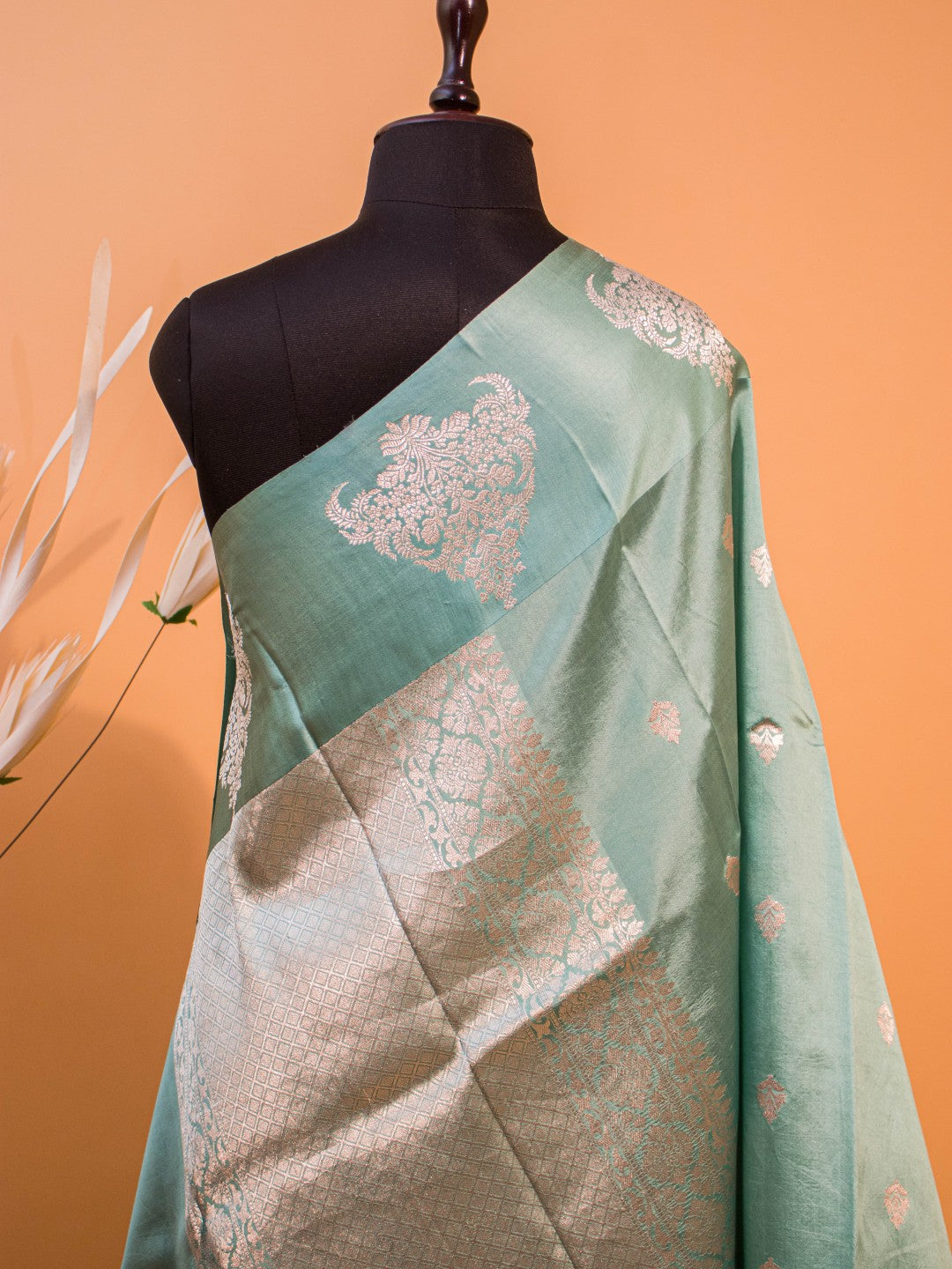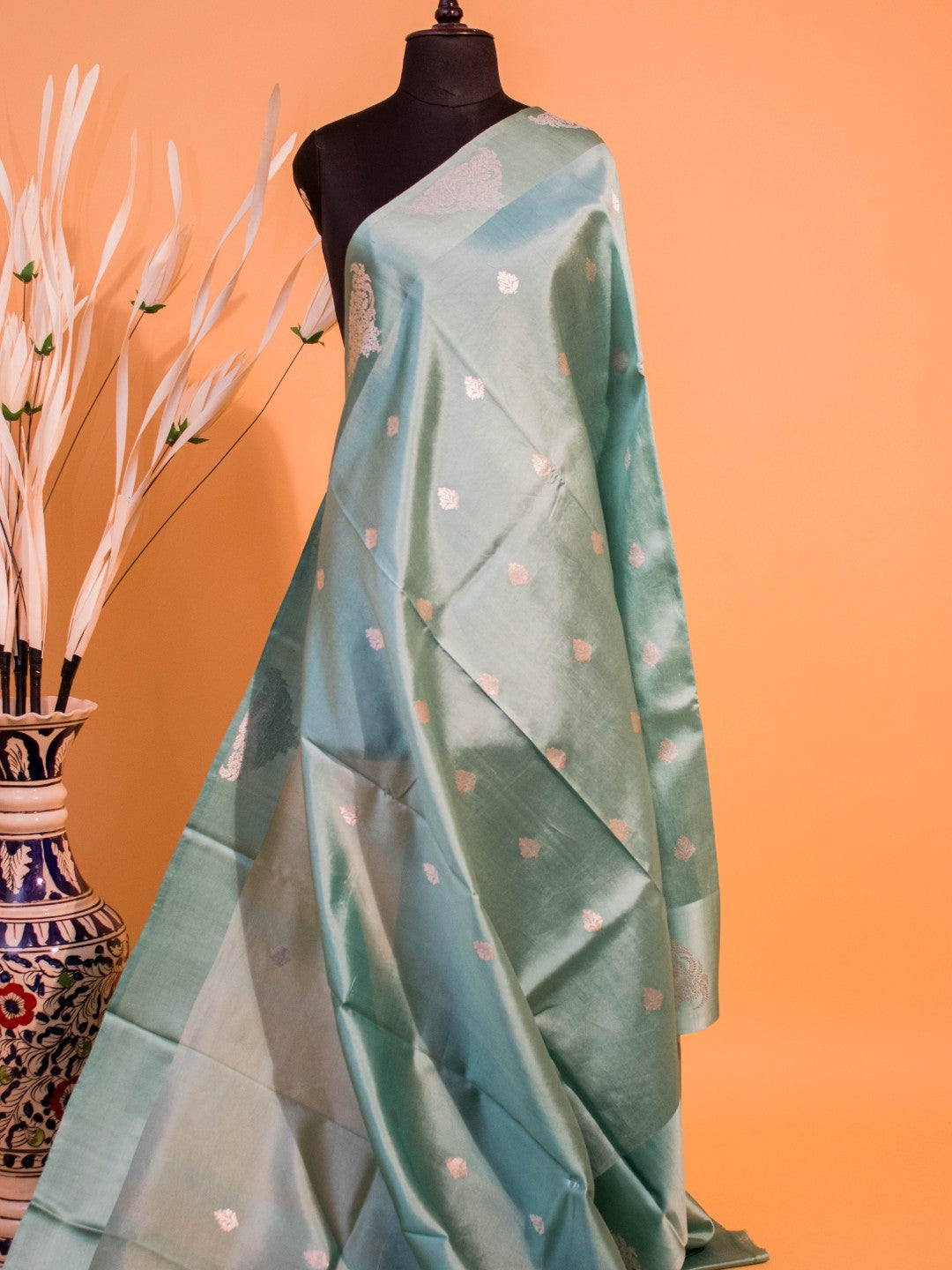 Pure Mashru Silk In Banarasi Motifs At Border - Blue