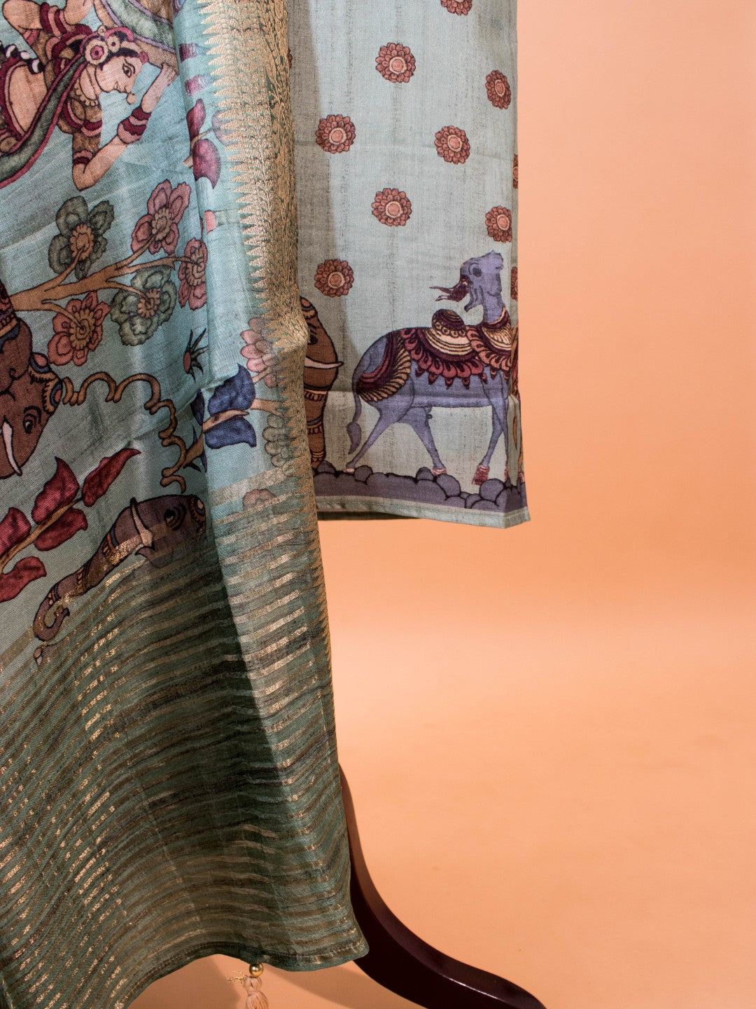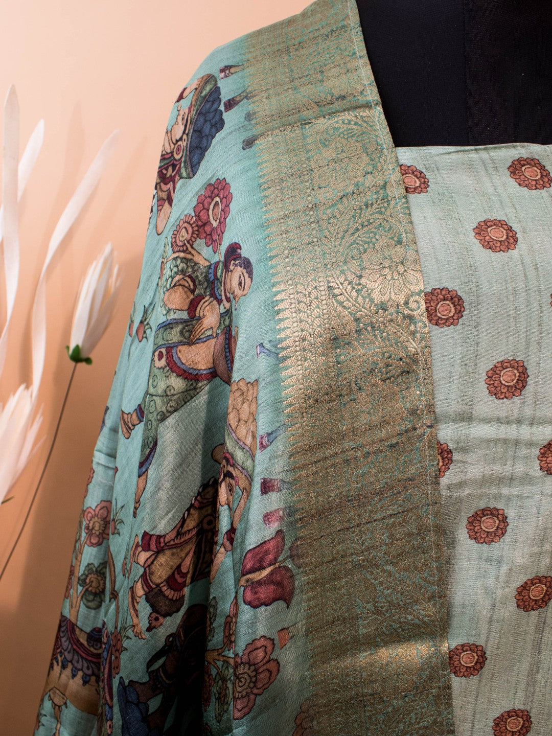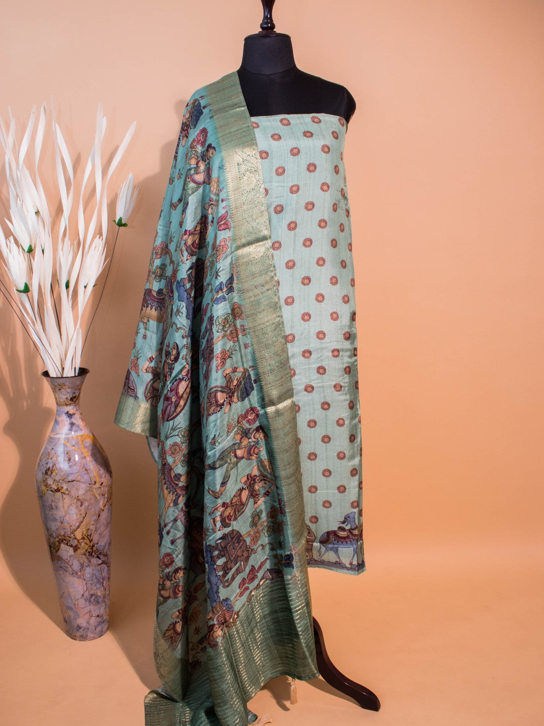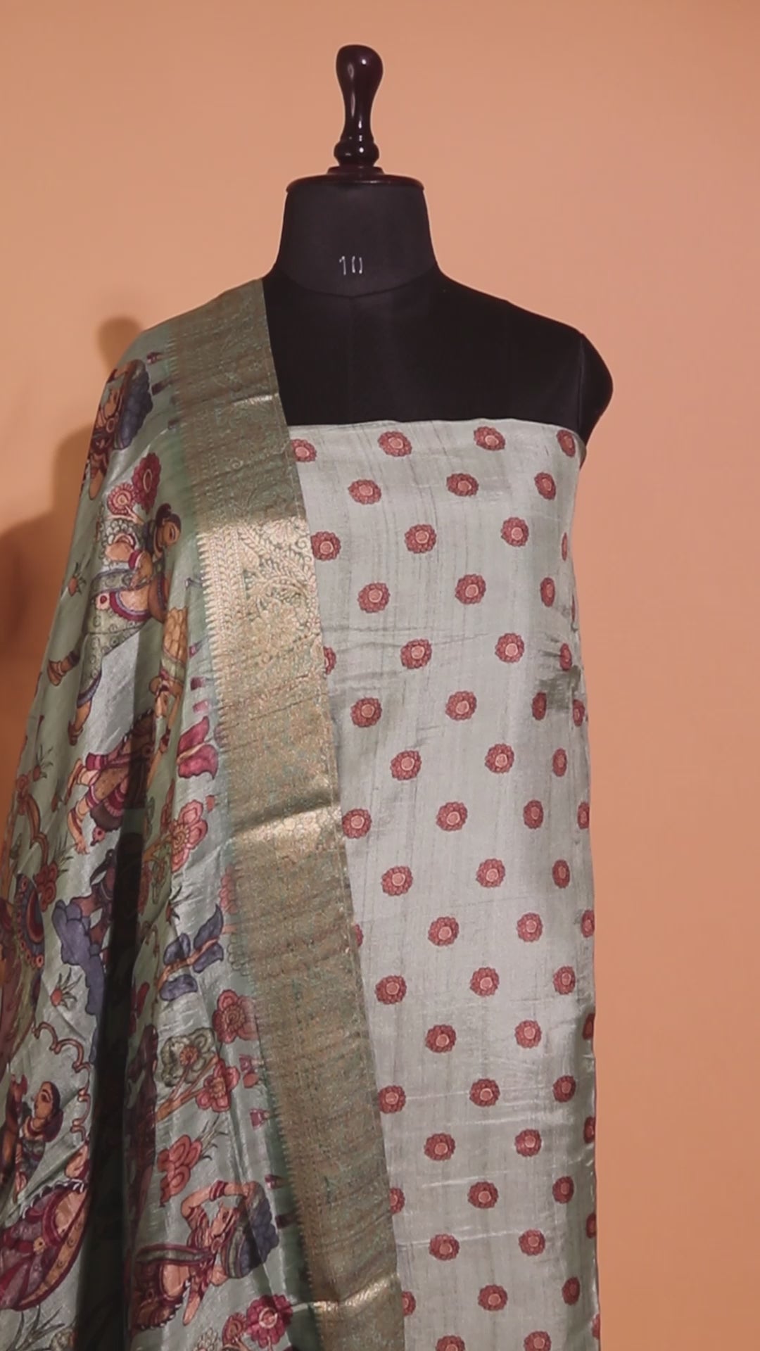 Pure Silk Kalamkari Printed Style Unstitched Suit