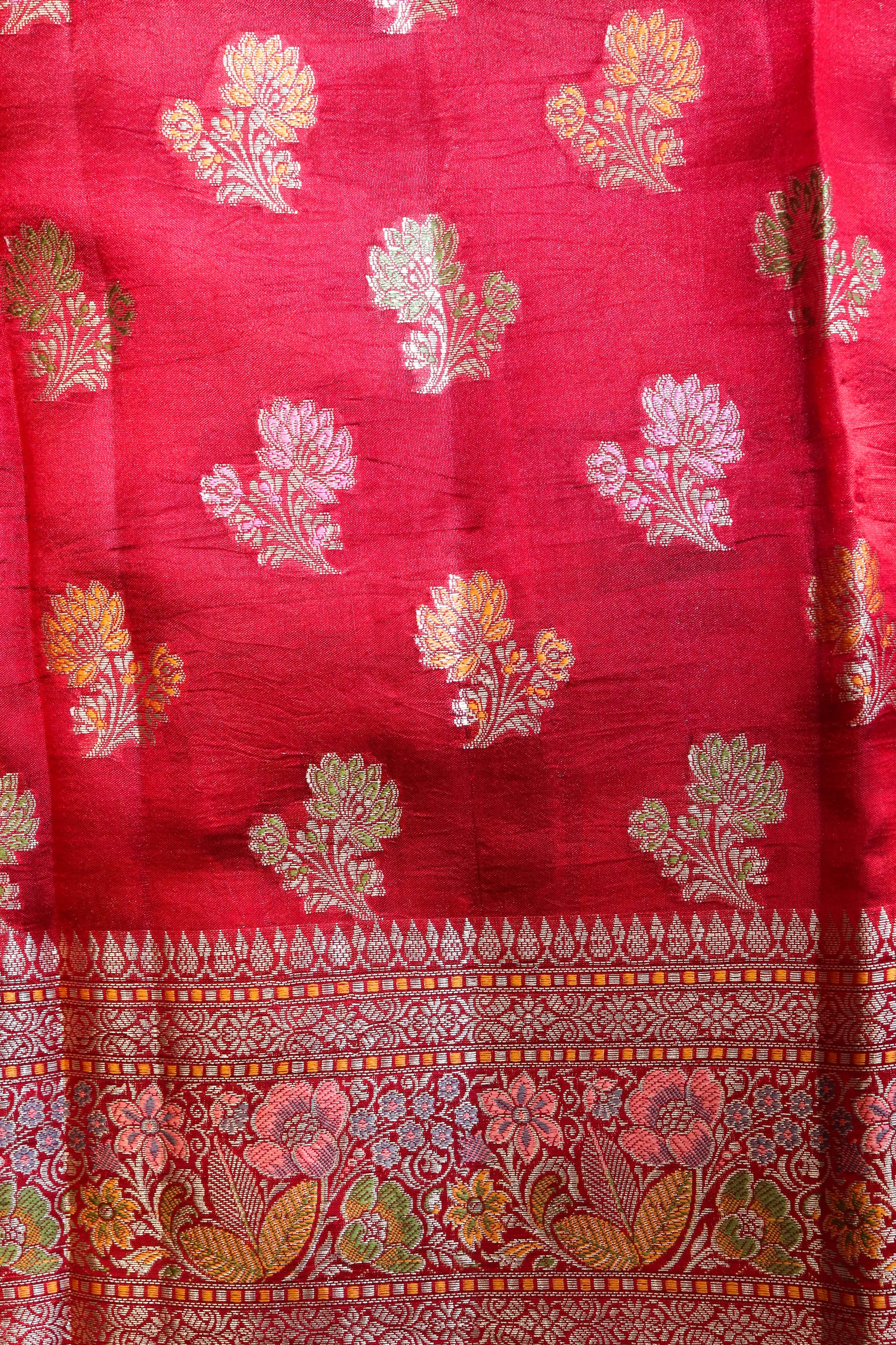 Pure Silk Plain Body Meenakari Border, Pallu And Blouse-Pink