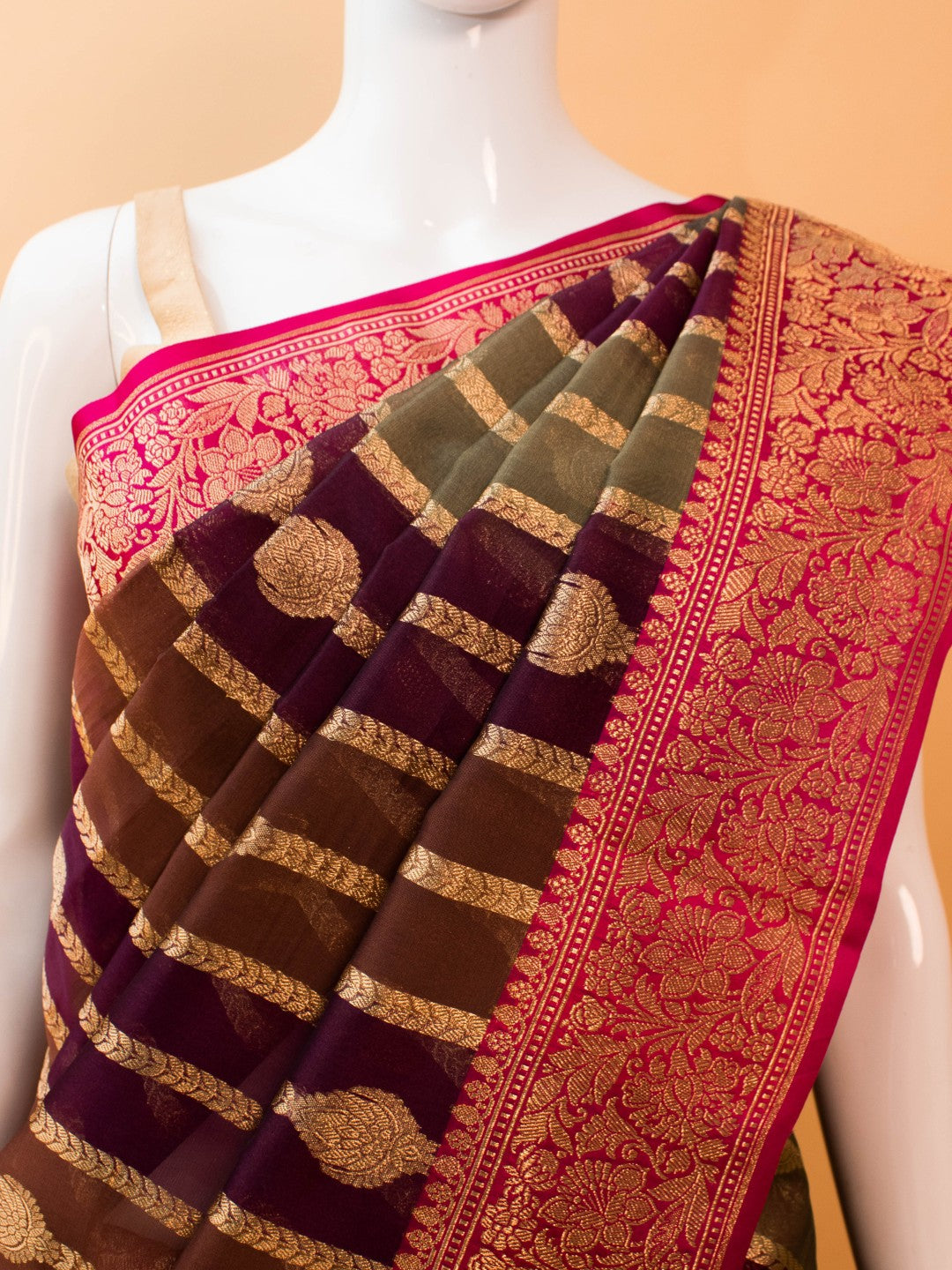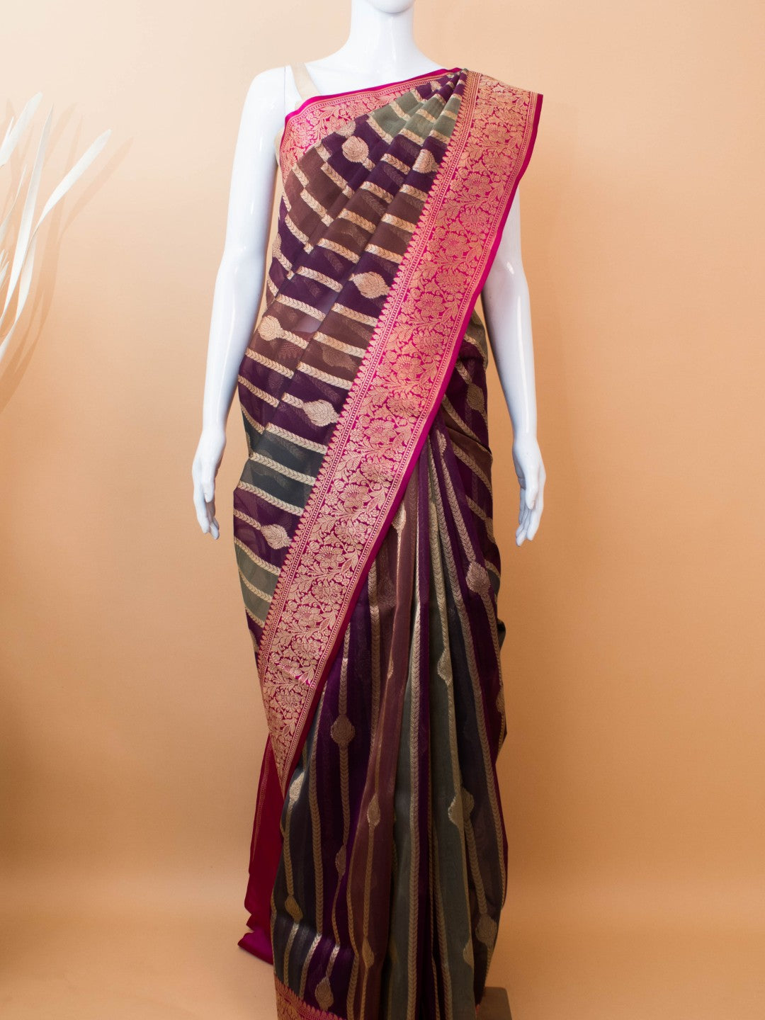 | Design | Lightweight sheer weave with Rangaat patterns and delicate zari borders |