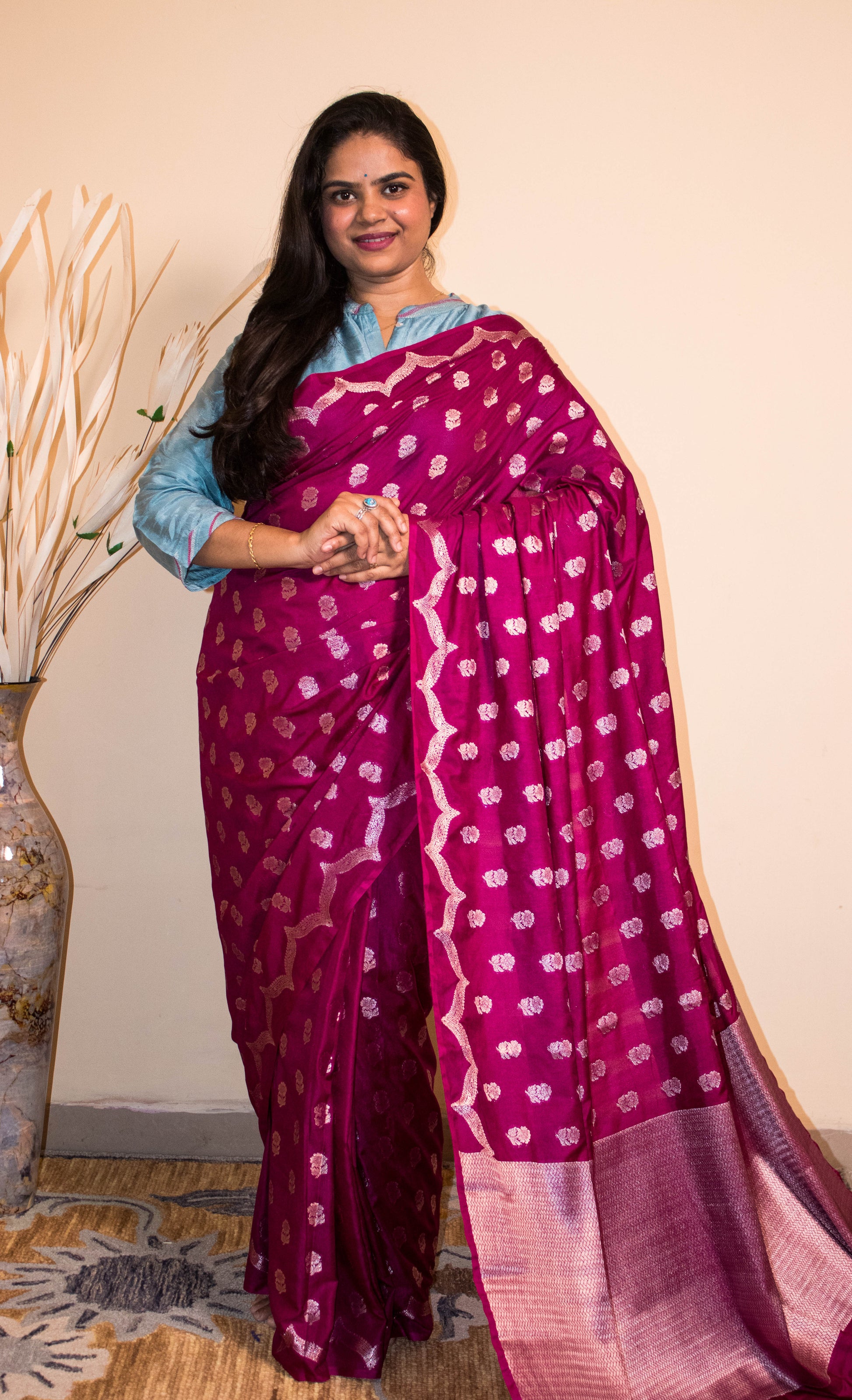 Scalping Thin Border With Buti All Over Weaved - Maroon