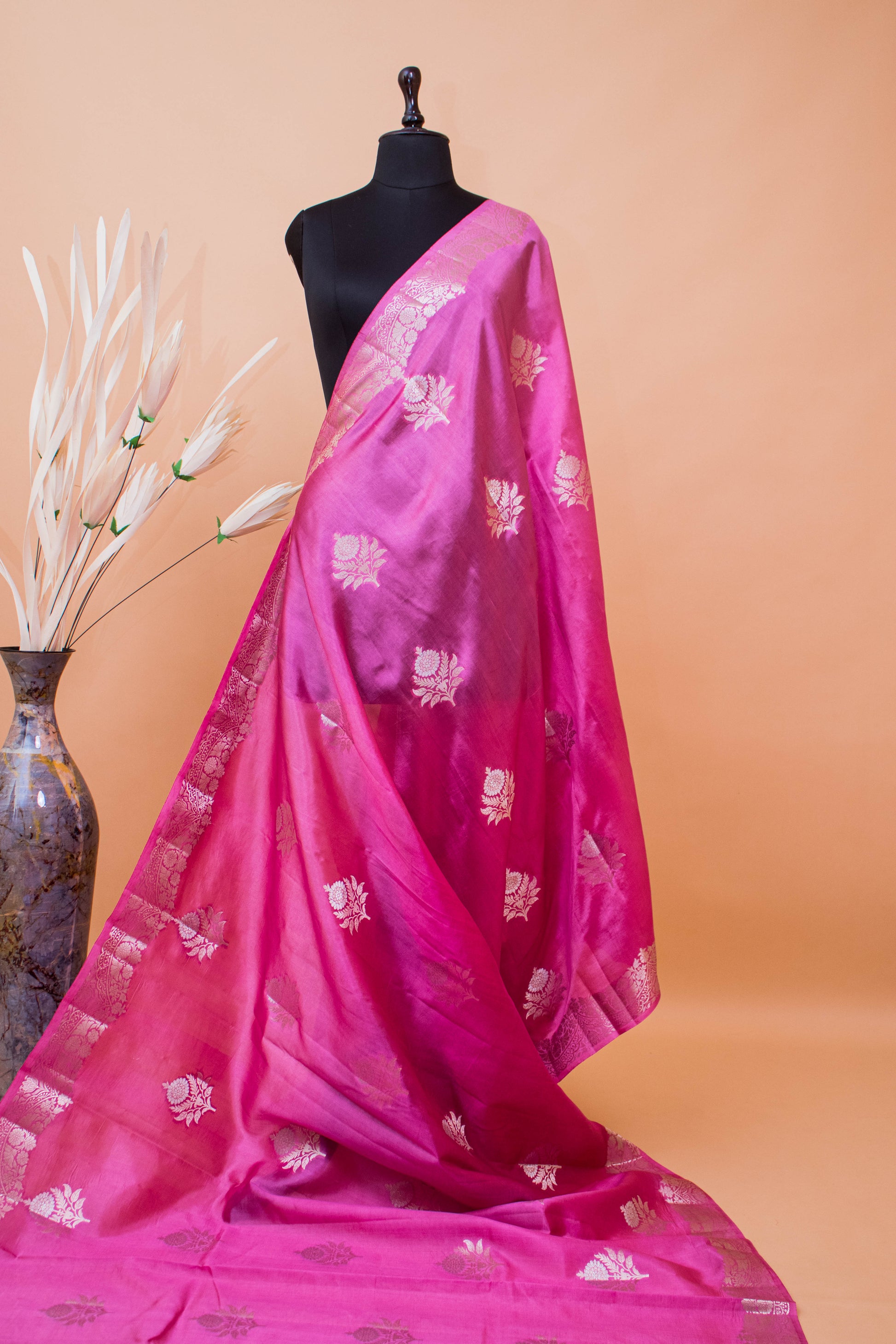 Scalping Weaving Border With Flower Butti All Over In Pure Banarasi Silk-Pink