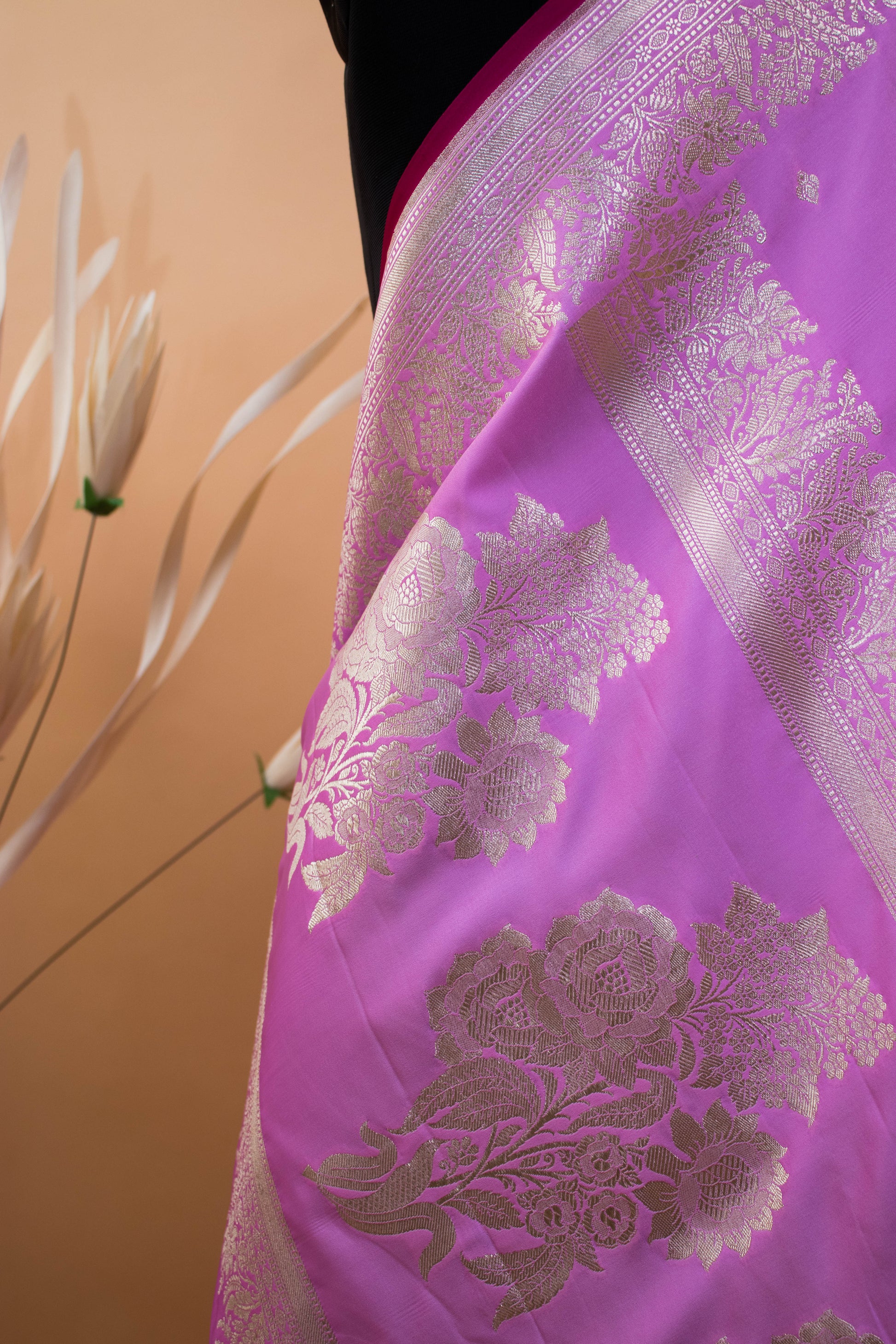 Sober Banarsi Double Border Small Butti Saree - Purple