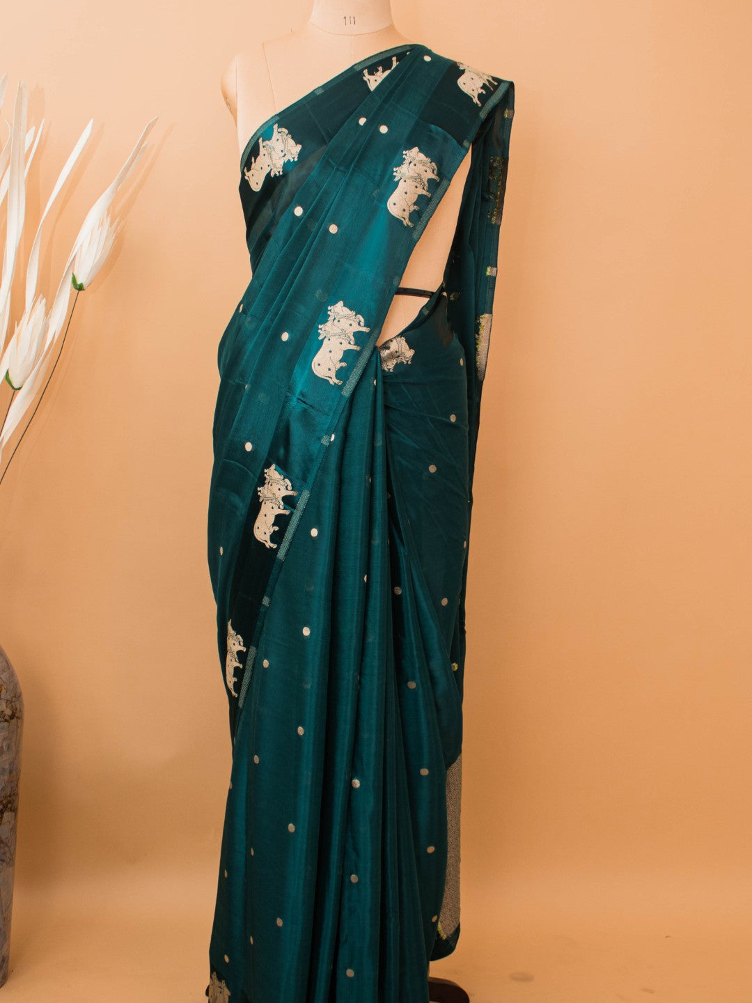 Soft Chinon Saree With Nandi Motif Border - Purple