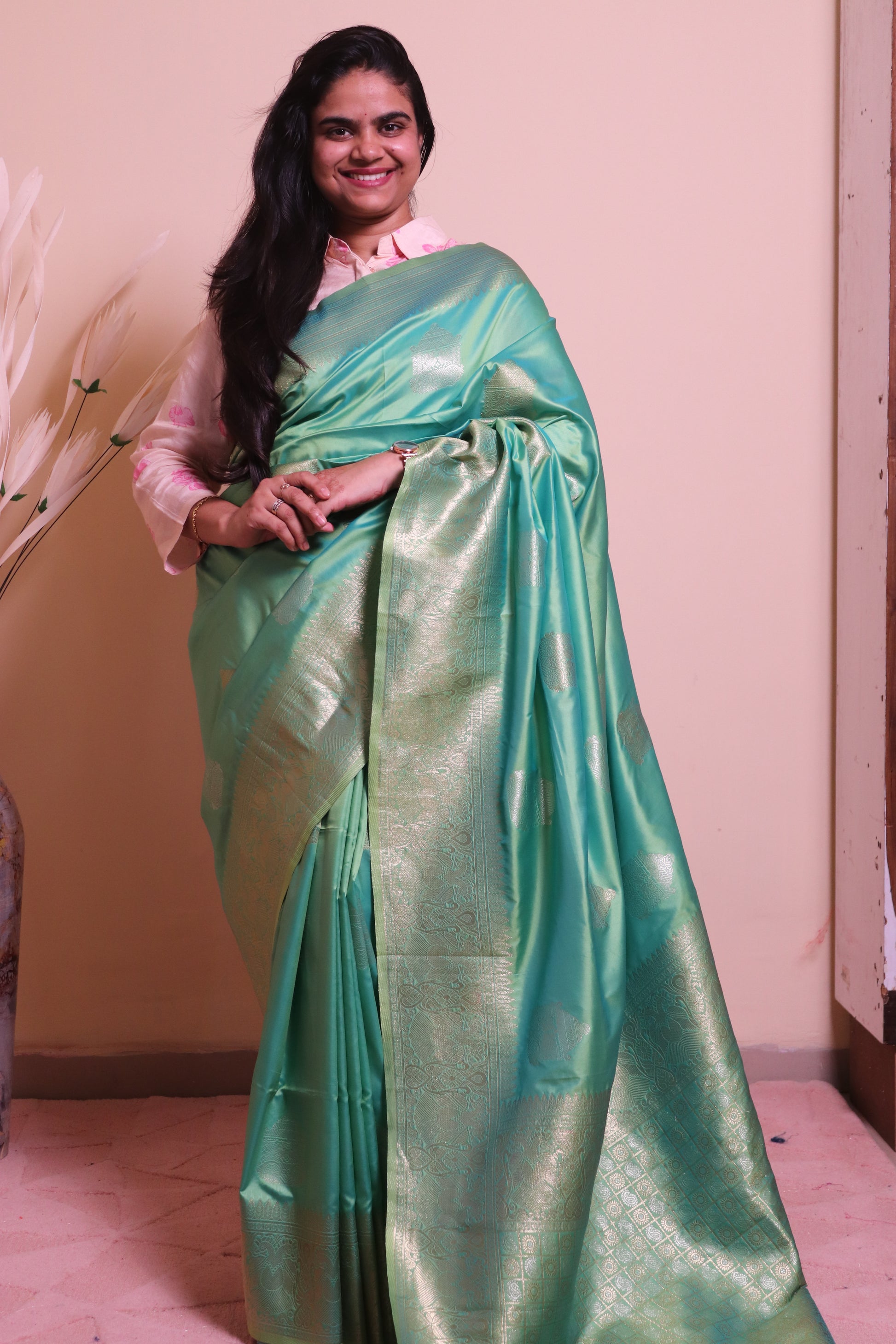 Soft Silk Weaved In Silver And Gold Zari - Blue