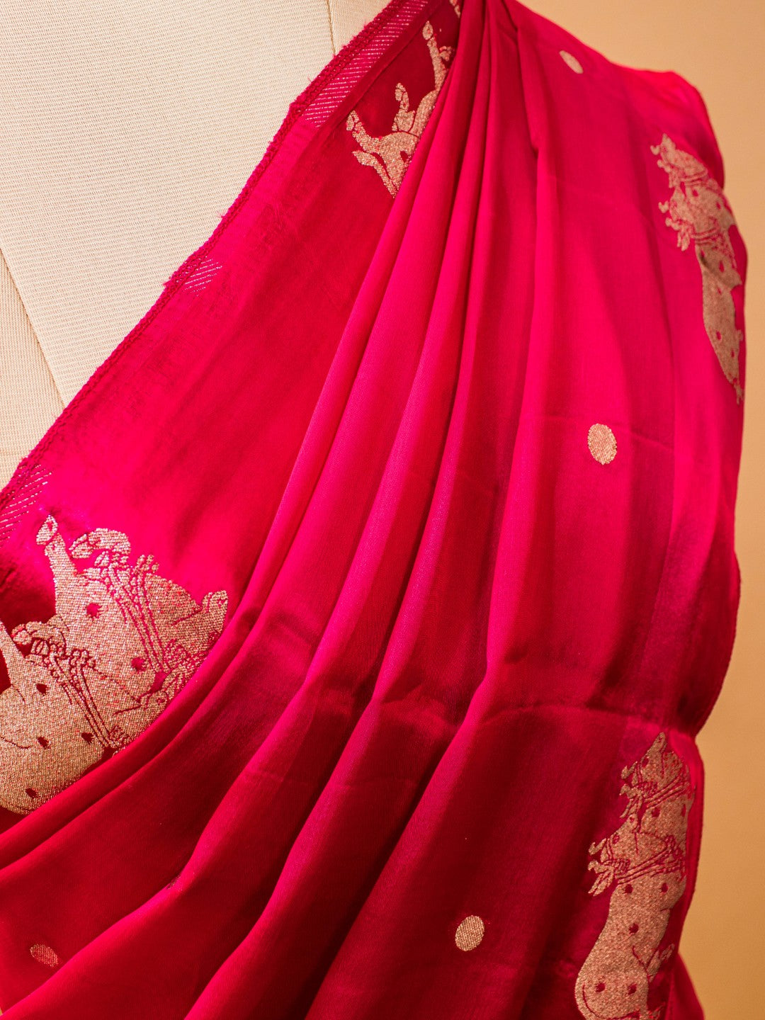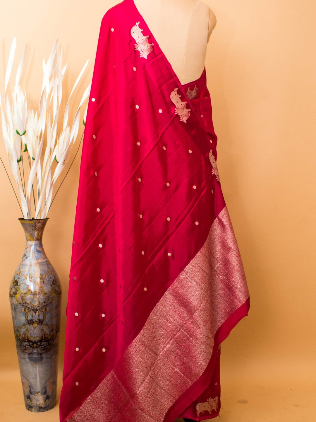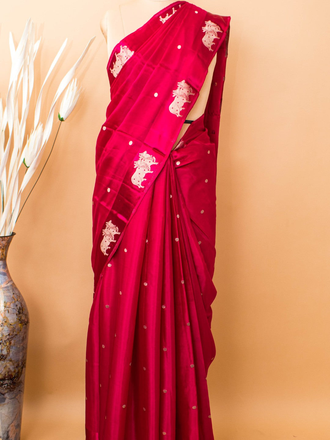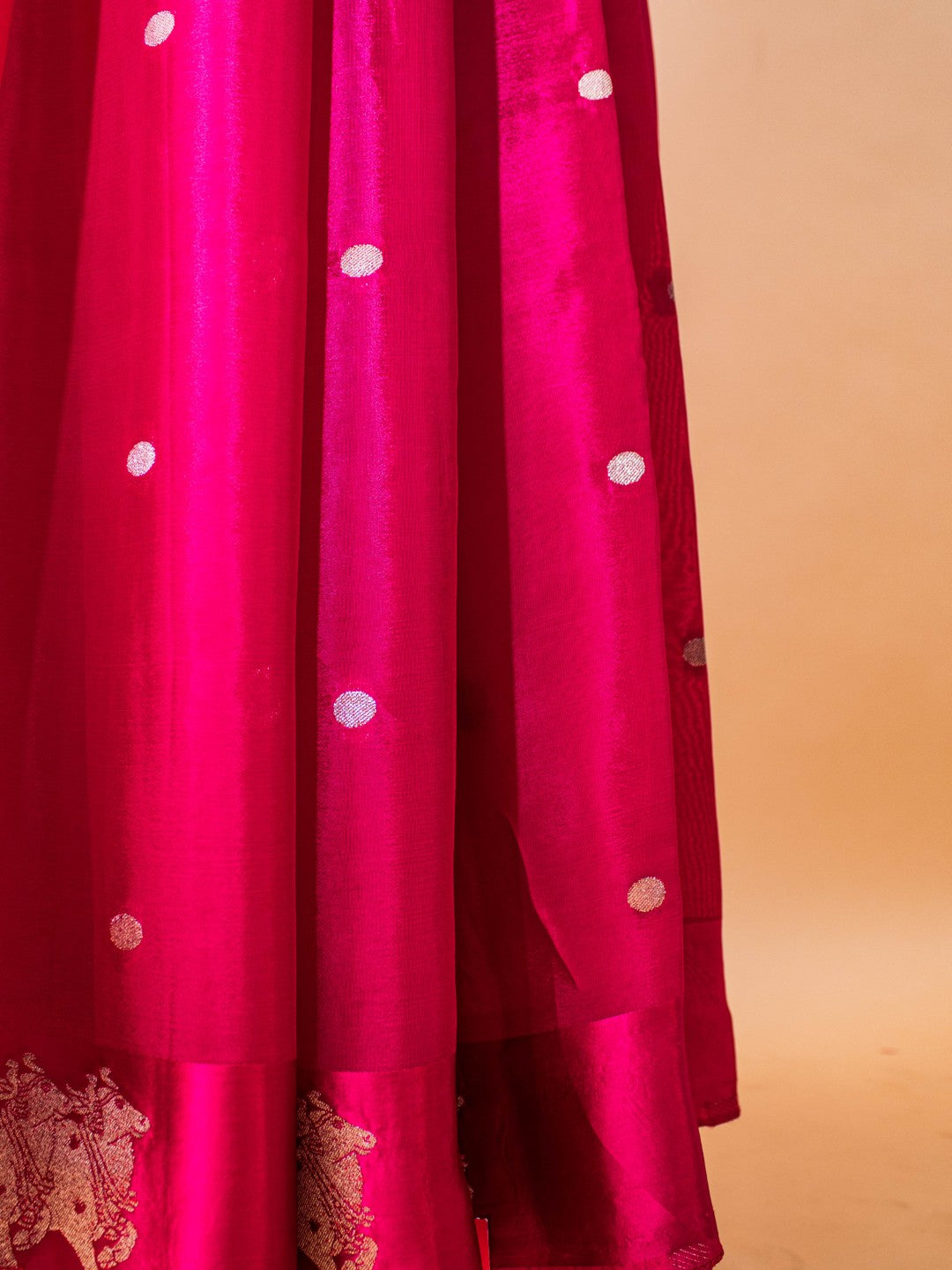 Soft Chinon Saree With Nandi Motif Border - Pink