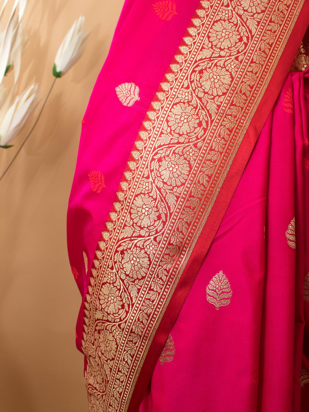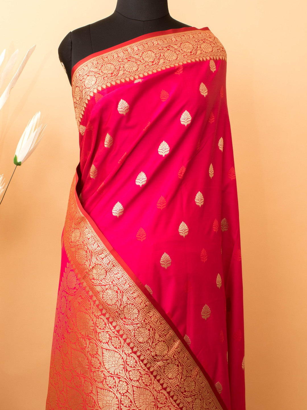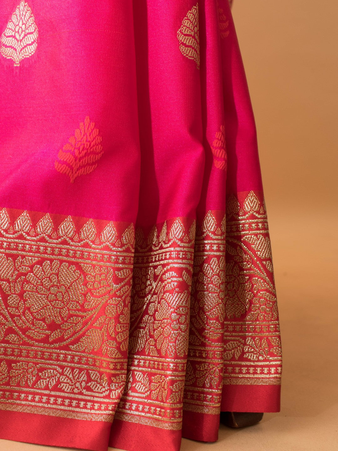 Traditional Banarasi Contrast Border Butti In Katan Silk