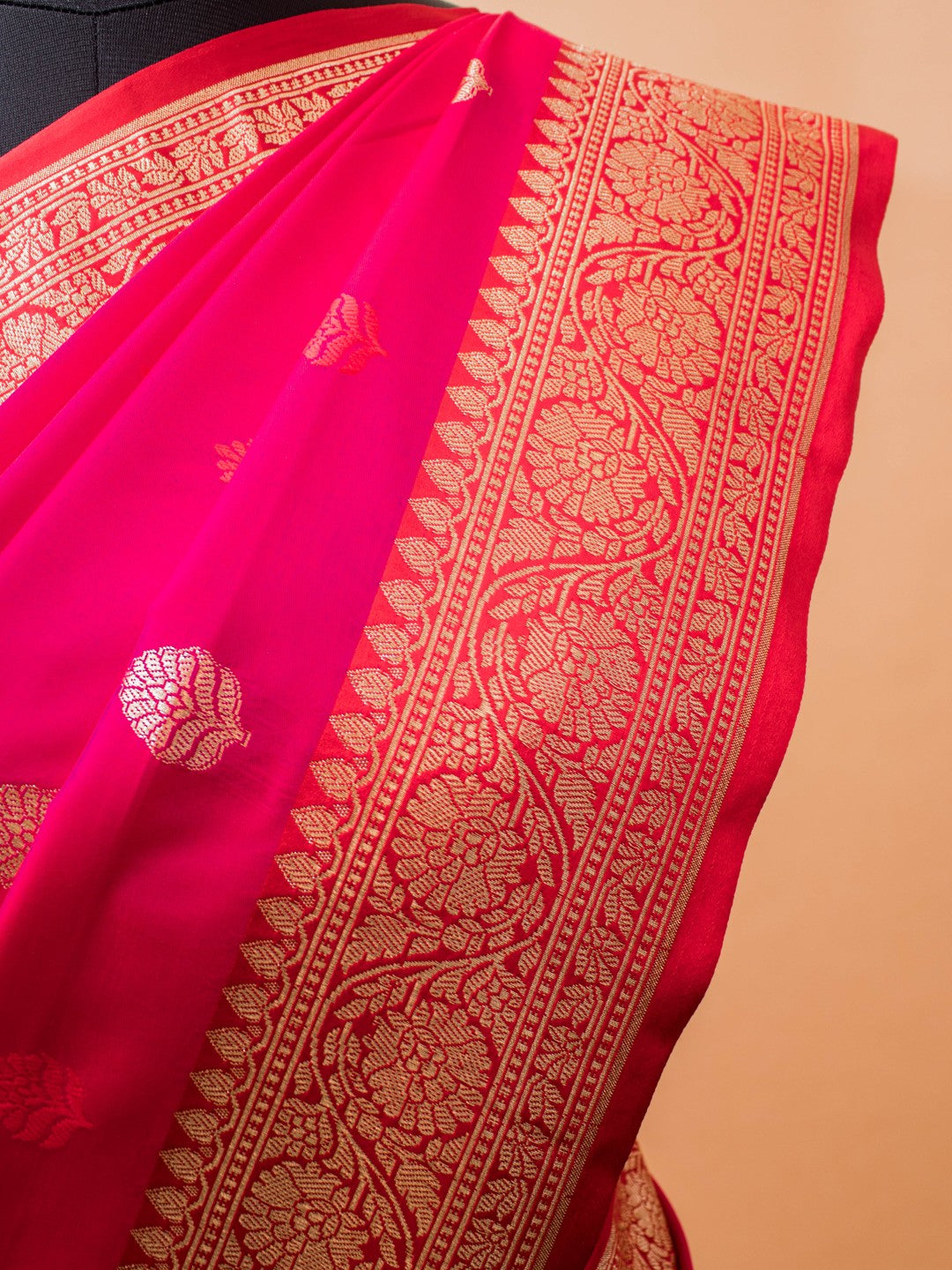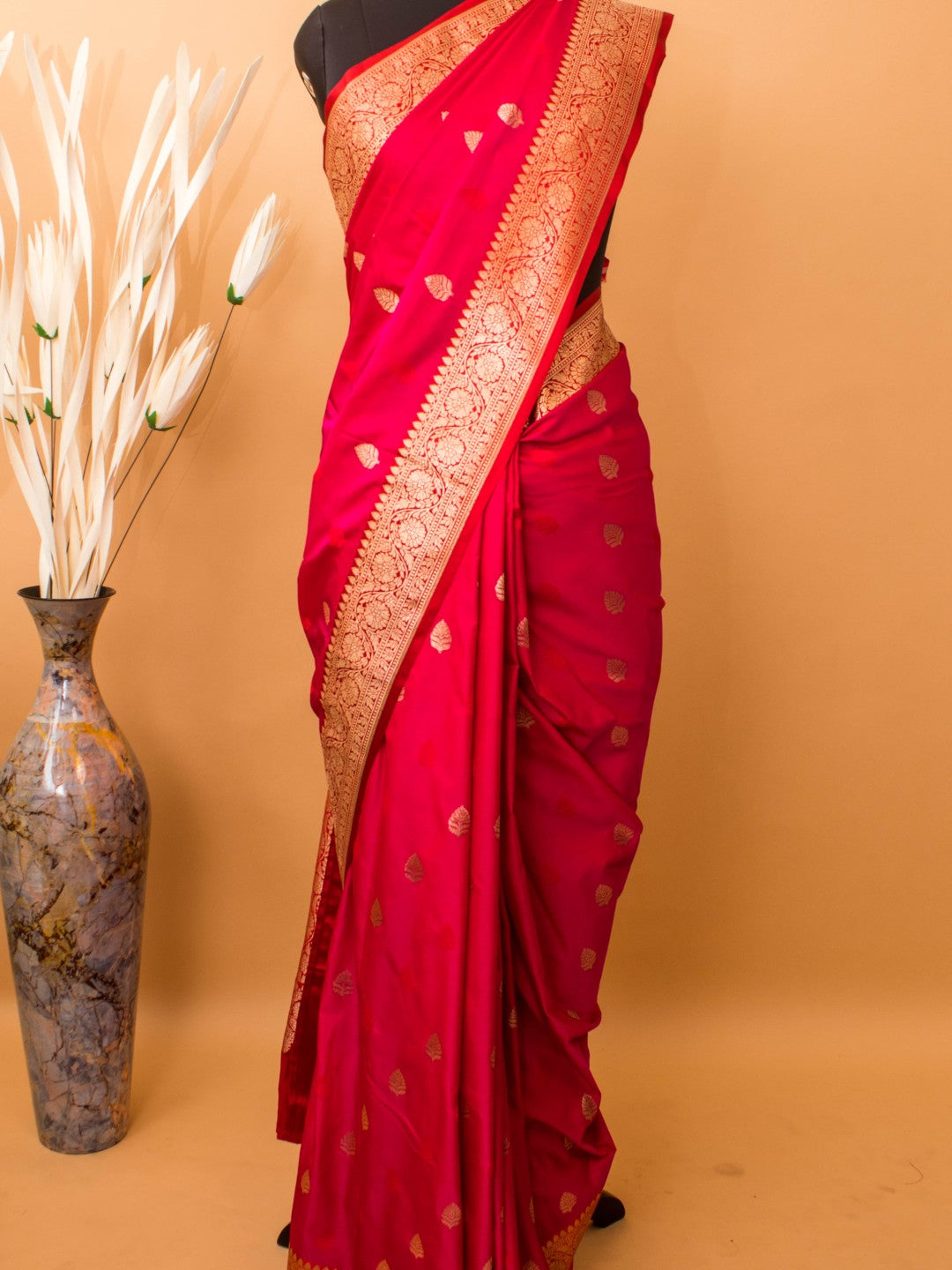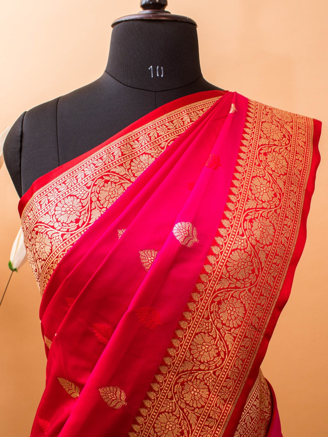 Traditional Banarasi Contrast Border Butti In Katan Silk