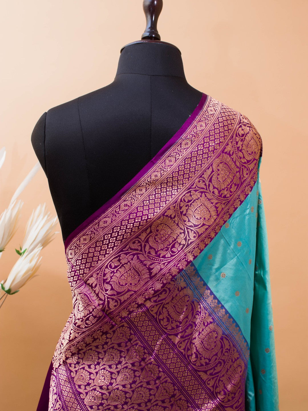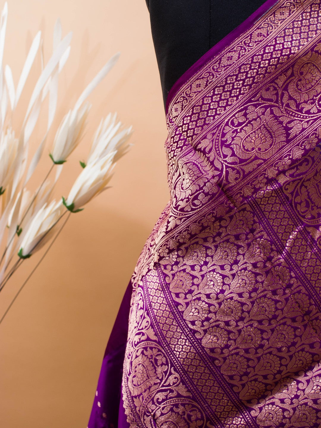 | Design | Traditional Banarasi motifs with intricately woven contrast border |