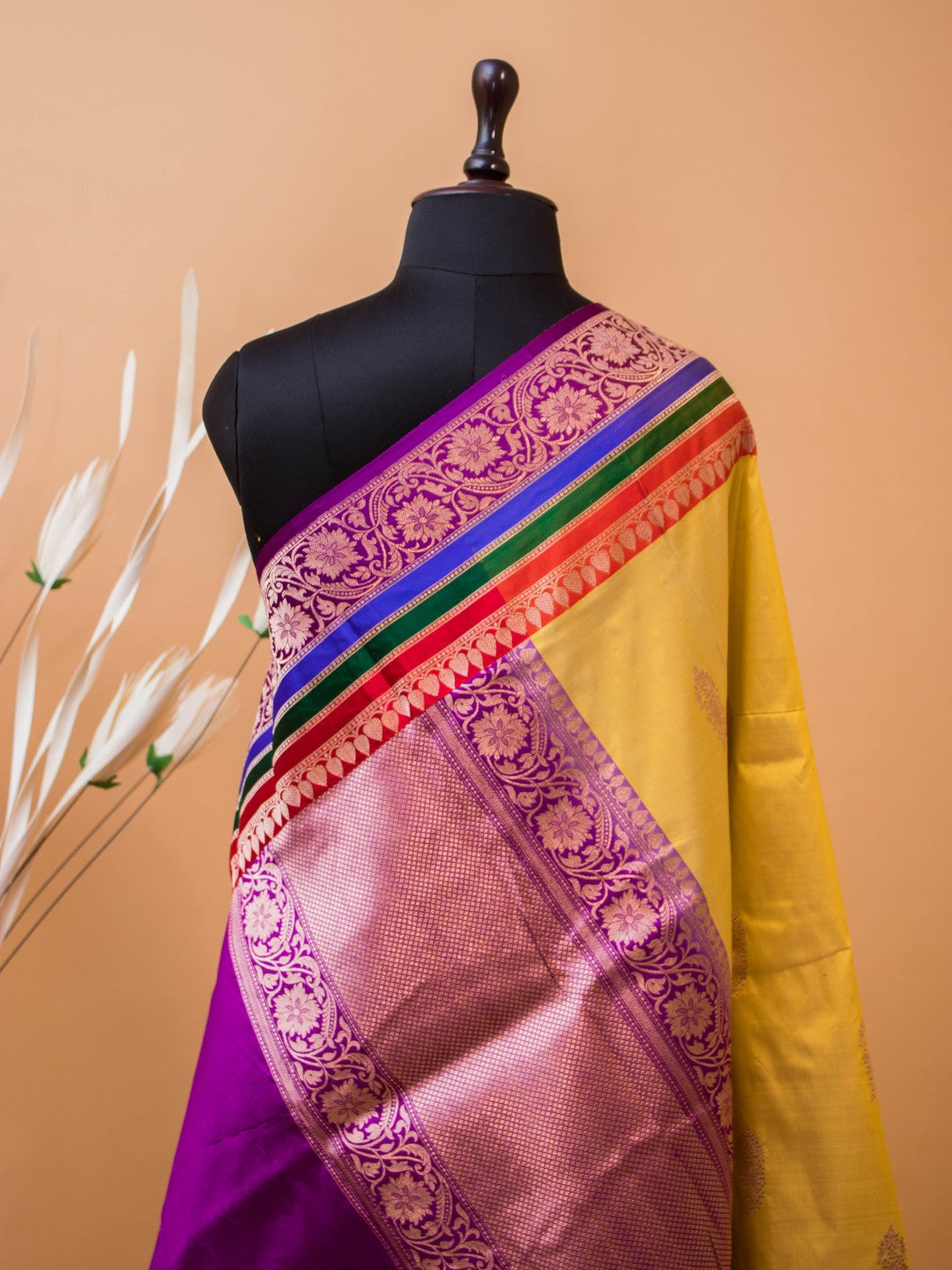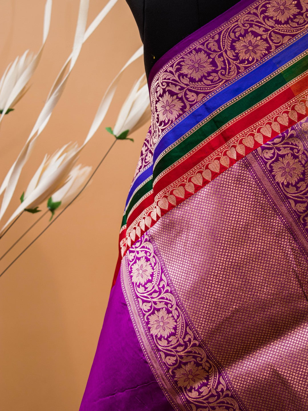 Traditional Pure Kataan Silk With Rangkaat Border Butti
