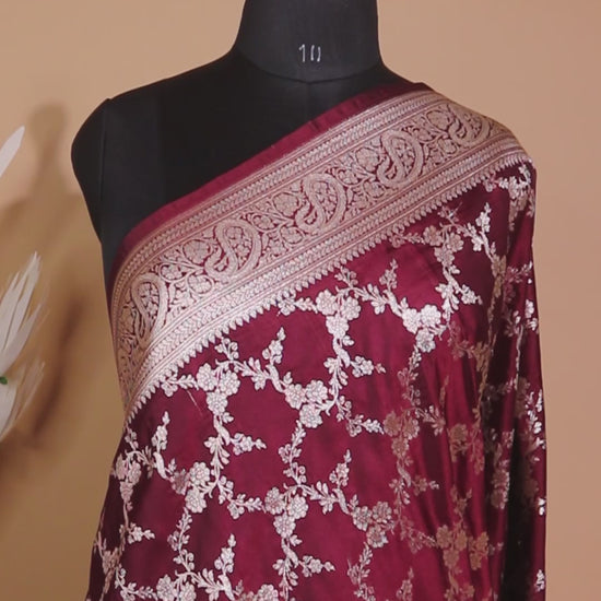 Upaada Jaal Weaving In Mashru Silk- Maroon