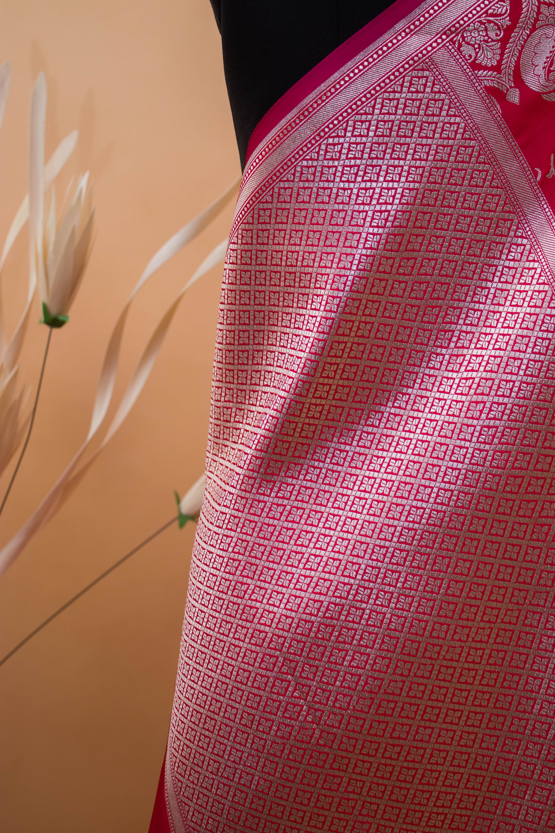 Wedding Banarasi Double Border And Jaal Weaving - Red